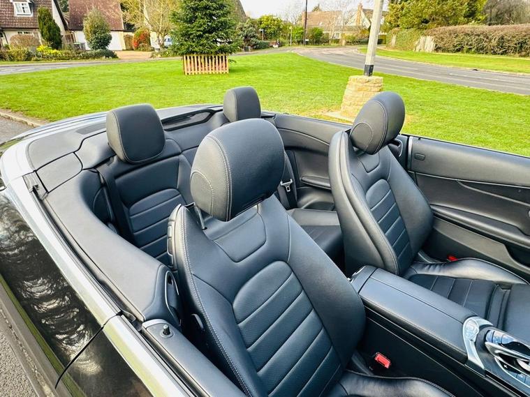++++DELIVERY ARRANGED+++ULEZ COMPLIANT++++ONLY COVERED A GENUINE 39, 000 MILES FROM NEW, FULL SERVICE HISTORY, 2 f/owners++++IN OBSIDIAN BLACK METALLIC WITH FULL BLACK ELECTRIC HEATED MEMORY LEATHER INTERIOR, RED SOFT ELECTRIC HOOD++++AIR SCARF++++Power steering, E/windows x4, R/c/locking, Electric folding mirrors, AIRCON/CLIMATE, Rear head restraints, Centre arm rest, MULTI FUNCTIONAL LEATHER STEERING WHEEL, Cruise control, Traction control, SATELLITE NAVIGATION, DAB RADIO, BLUETOOTH MUSIC AND TELEPHONE. USB, BURMESTER SOUND, DRIVE MODE SELECT, ADJUSTABLE SUSPENSION, FRONT AND REAR PARKING SENSORS WITH REVERSE CAMERA, ELECTRIC BRAKE, ENGINE STOP/START, FACTORY AMG BODYSTYLING, Auto Led headlights, ELECTRIC BRAKE, 18 AMG ALLOYS, Airbags, Fogs, Colour coded, Mot July 2026, 2 KEYS, Looks and drives immaculate.