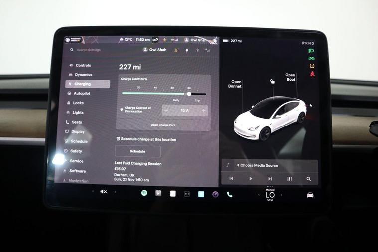 This 2021 Tesla Model 3 Long Range offers an impressive electric driving experience with a substantial new battery range of 360 miles. As an electric vehicle with Four Wheel Drive, it combines efficiency with all weather capability. This model features a generous 78 kWh battery, providing ample power for your journeys. Charging at home on a 7kW charger will take approximately 12 hours for a full charge, while rapid public charging can take you from empty to 80% in just 26 minutes. Inside, you'll find a host of convenient features including a heated steering wheel, 2 zone climate control for personalised comfort, and blind spot information to enhance safety. The 12 way power adjustable front and rear seats are also heated, ensuring a comfortable ride for all occupants, and Bluetooth connectivity allows for seamless integration of your devices. The Tesla Model 3 Long Range stands out with its remarkable performance, achieving 0-60mph in a swift 4.2 seconds, demonstrating its dynamic acceleration capabilities. This performance, combined with its extensive 360 mile range, positions it favourably against many other vehicles in its class. Furthermore, the Model 3 boasts a large boot space, offering practical storage solutions for shopping, luggage, or equipment, making it a versatile choice for everyday use and longer trips alike.
