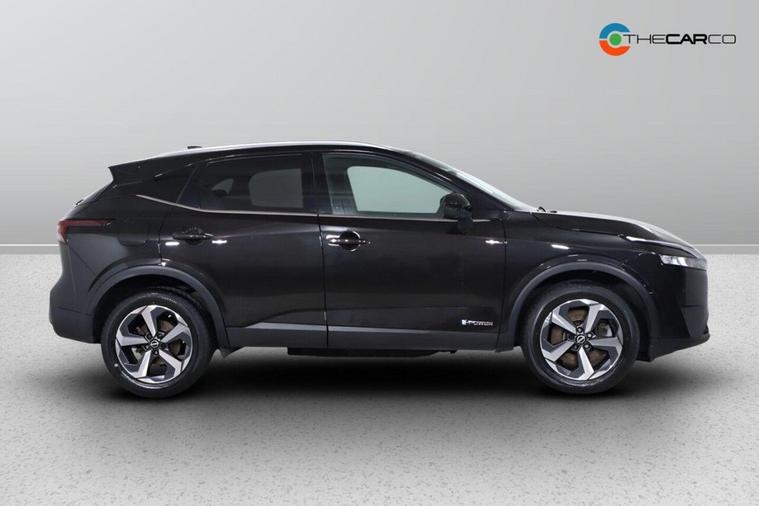 This 2023 Nissan Qashqai h e-POWER N-Connecta is a superb example, having had only one owner since new. This stylish SUV features a 1.5 litre petrol hybrid engine, meeting Euro 6 emission standards. It comes equipped with a suite of intelligent driver aids, including front parking sensors for easier manoeuvring, blind spot warning and intelligent blind spot intervention to enhance awareness of your surroundings, and intelligent auto headlights that adjust automatically. The N-Connecta trim also benefits from an intelligent key system, offering keyless entry for added convenience. Experience impressive efficiency with a fuel economy of 54 miles per gallon, a highlight that sets this Qashqai apart from many others. Its low CO2 emissions further contribute to its appeal as a more environmentally conscious choice. You'll also appreciate the generous boot space, perfect for all your luggage and shopping needs. Performance is also a strong point, with an acceleration of 0 to 62 miles per hour achieved in just 7.9 seconds, demonstrating a responsive and engaging driving experience.
