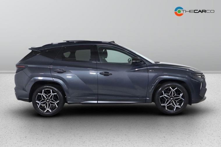 This 2022 Hyundai TUCSON T-GDi N Line S is a superb example, having had only one owner since new. This Euro 6 compliant petrol hybrid boasts a 1.6 litre engine and comes equipped with a wireless phone charging pad, front and rear parking sensors for effortless manoeuvring, and a smart key system for keyless entry and engine start. Inside, you'll appreciate the three zone climate control to keep everyone comfortable, and the smart adaptive cruise control with stop and go function for relaxed journeys. The N Line S trim offers a host of benefits that set this TUCSON apart. Its large boot space provides ample room for all your luggage or shopping needs, making it incredibly practical. Furthermore, its low insurance group rating means that running costs are kept to a minimum, offering excellent value for money compared to similar vehicles. This well maintained Hyundai TUCSON is ready for its next adventure.