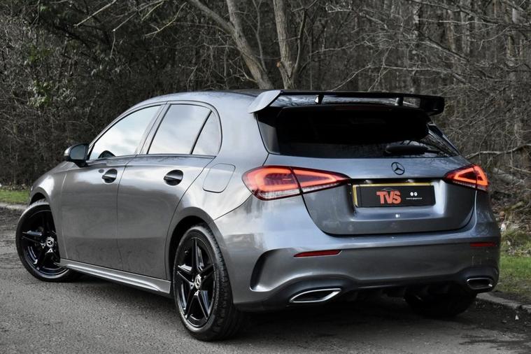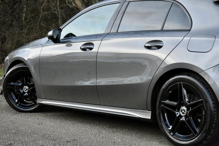2018/68 Mercedes Benz A180d AMG Line Executive 7G-DCT 116 ps 5 door hatchback (Euro 6) - Automatic - Mountain Grey metallic with half leather and half alcantara interior (heated front seats) - 76k miles - only 1 former keeper - 2 remote keys - Mercedes Benz main dealer and Arnold Clark service history - just serviced for sale - fresh 12 months MOT with no advisories - Platinum warranty - full 12 months AA roadside assistance also included! A45 AMG Bodystyling Package! Night Pack! Gloss Black AMG alloy wheels! Widescreen media! Rear sun protection glazing!