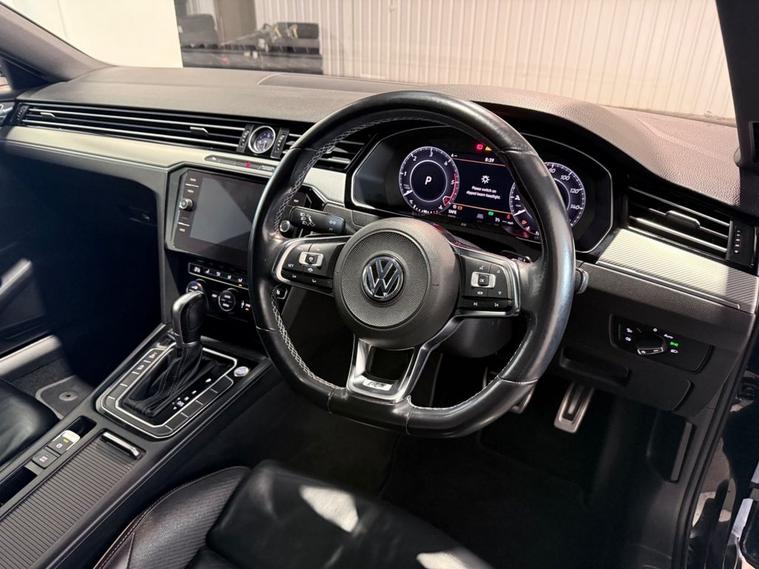 **THIS VEHICLE MAY BE AT OUR 150-CAR STORAGE FACILITY. PLEASE CALL AHEAD TO ARRANGE VIEWING AT OUR WINCHESTER SALES SITE** New MOT upon sale. Serviced at 7k, 14k, 26k, 35k and 42k miles and will be serviced again by us upon sale. This well looked after VW Arteon finished in deep black with a matching black leather interior is ideal for anyone looking for a blend of fun and practicality. Equipped with various features such as Front and rear park assist, adaptive cruise control with speed limiter, climate control, heated front seats and more. Powered by a 2 litre diesel engine and an automatic gearbox.