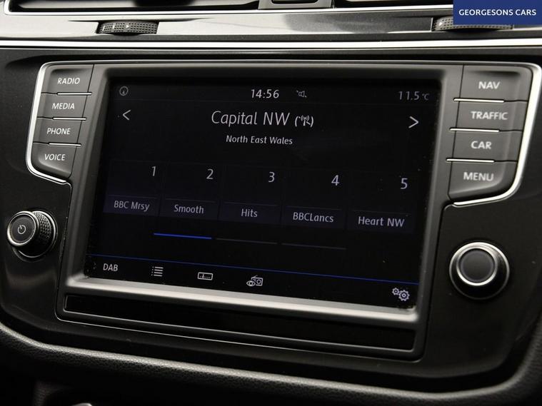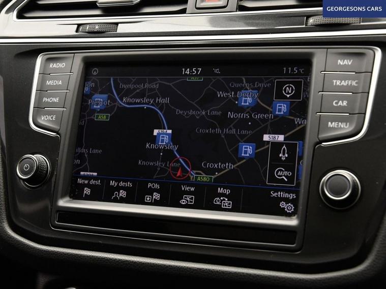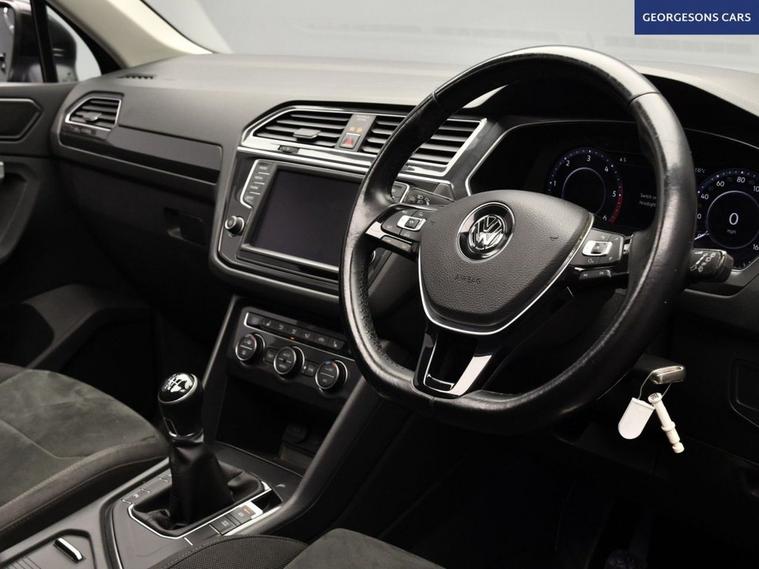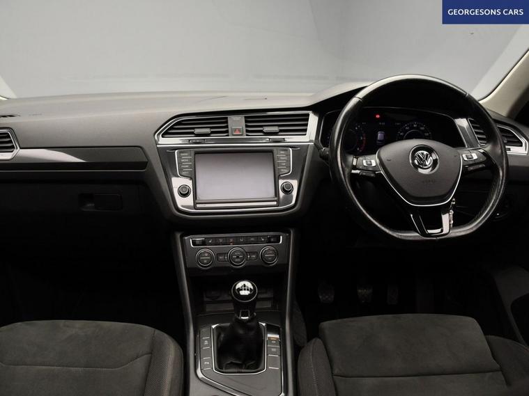 The Volkswagen Tiguan 2.0 TDI SEL combines a strong 2.0-litre turbo diesel with 150hp, delivering 0-62mph in 9.3 seconds and up to 58.9mpg in this front-wheel-drive setup with a precise 6-speed manual gearbox. The luxurious SEL trim brings 18-inch alloys, premium styling and a high-grade interior. Enjoy the expansive panoramic glass roof and front + rear heated seats with 3-zone climate control for all-season comfort. Integrated satellite navigation, Apple CarPlay, Bluetooth and DAB radio keep you connected. Parking is easy with front & rear parking sensors. Adaptive cruise control, start-stop and selectable drive modes deliver relaxed, efficient driving every day. The spacious five-door SUV includes a 615-litre boot.