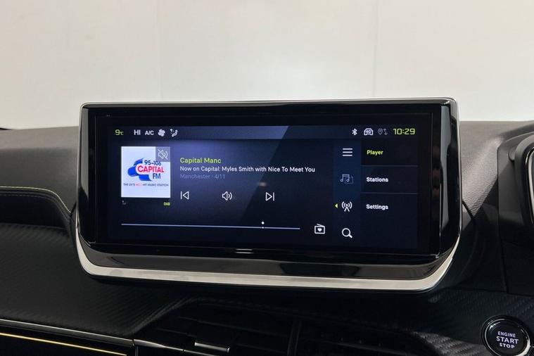 This 2024 Peugeot 208 GT is a standout example, having had only one owner from new and boasting an incredibly low mileage of just 7392 miles. This nearly new hatchback features a 1.2L Petrol Hybrid engine, meeting Euro 6 emission standards, and comes with an MOT valid until March 2027. Its provenance is further assured with a clear vehicle history check. Inside, youll find the advanced PEUGEOT i-Cockpit with a 10in configurable colour 3D head up instrument panel, alongside the convenience of the PEUGEOT Open and Go system for keyless entry. Practicality is enhanced with rear parking sensors and a 180 degree HD rear camera, while the 15W smartphone wireless charging plate keeps your devices powered. Experience impressive efficiency with a fuel economy of 65 mpg, and enjoy the benefit of low CO2 emissions. The 208 GT offers brisk performance, accelerating from 0-60mph in just 8.1 seconds, a figure that demonstrates its agility compared to other vehicles in its class. This model also provides generous boot space, making it a versatile choice for everyday needs and longer journeys.