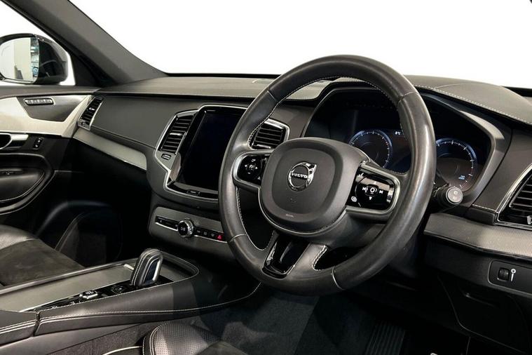 This 2021 Volvo XC90 B5 R Design Pro is a superb example, having had only one owner from new and boasting a clear vehicle history check. This Euro 6 compliant, four wheel drive estate features a 2.0 litre petrol hybrid engine and offers comfortable seating for seven occupants. Its MOT is valid until June 2026, providing peace of mind for the new owner. Notable features include a power glass tilt and slide panoramic sunroof with sun curtain, a 360 degree surround view parking camera system, and wireless inductive mobile phone charging. The R Design Pro trim also benefits from the Lounge Pack, which includes climate control, and driver assistance features such as Blind Spot Assistance. With an impressive acceleration of 0-60mph in just 7.3 seconds, this XC90 offers a dynamic driving experience that sets it apart from many other vehicles in its class. Its substantial towing weight of 2400 kg makes it a practical choice for those needing to tow caravans or trailers. The combination of its advanced technology, spacious interior, and robust performance makes this Volvo XC90 a compelling option for families and individuals seeking a premium and versatile SUV.