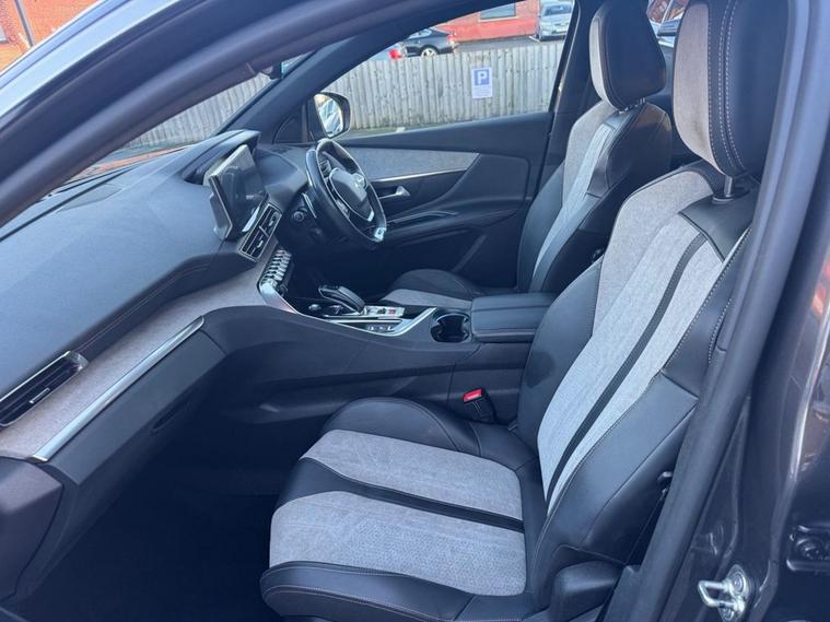 Peugeot 3008 1.6 Petrol Plug-in Hybrid Electric GT-Premium AUTO in Nimbus Grey paintwork, Nera Black roof and 18inch Diamond cut alloys. Only 1 owner from new with FULL SERVICE HISTORY. The car boasts an impressive combined fuel efficiency of over 200 miles per gallon and is ULEZ/CAZ compliant. Spec includes a touchscreen satellite navigation system, Carplay / Android Auto, Bluetooth connectivity, USB & AUX input, DAB digital radio, 360-degree reverse camera and front + rear parking sensors. Additional highlights are the cruise control, speed limiter, power folding wing mirrors, dual-zone climate control air conditioning, and ISOFIX for child seat safety. Call 01138032273 or visit dealer's website