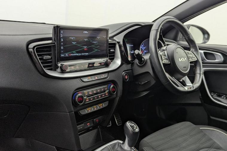 Henson Car Store presents the KIA CEED 1.5 T-GDi GT-Line Hatchback 5dr Petrol Manual Euro 6 (s/s) finished in Black, this car comes with service history. This 2022 Kia Ceed T GDi GT Line presents a superb ownership proposition, having been meticulously maintained by just one owner since new. This Euro 6 compliant model boasts a responsive 1.5 litre petrol engine, offering an engaging driving experience with a 0-60mph time of just 8.4 seconds. Inside, youll find a wealth of desirable features designed for comfort and convenience, including a heated steering wheel for those chilly mornings, a reversing camera system with dynamic guidelines to aid parking, and seamless integration with Android Auto for easy access to your favourite apps via voice control. The dual automatic air conditioning ensures a pleasant cabin temperature for all occupants, while the smart entry system with an engine start-stop button adds a touch of modern sophistication. Beyond its impressive features, this Kia Ceed GT Line stands out with its generous boot space, making it a practical choice for families, shoppers, or anyone needing ample room for luggage. The combination of its brisk acceleration, advanced technology, and practical design clearly sets it apart from other vehicles in its class, offering a well rounded and enjoyable ownership experience.