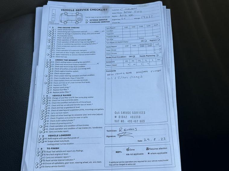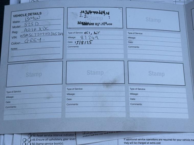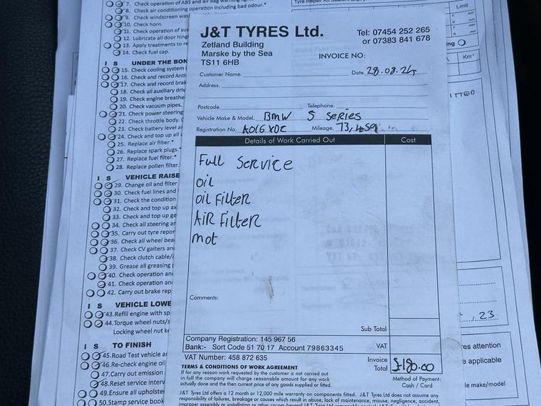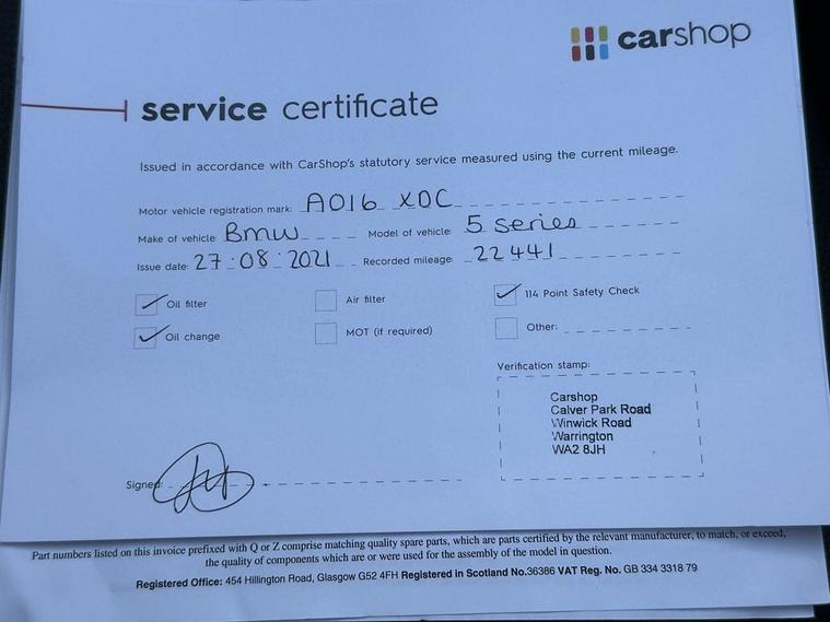 This 2016 BMW 5 Series 525d M Sport offers excellent peace of mind with its MOT valid until August 2026. This Euro 6 compliant model features a powerful yet efficient 2.0L diesel engine and is presented in the desirable M Sport trim. Inside, youll find automatic air conditioning with climate control, ambient interior lighting for a sophisticated atmosphere, and a rain sensor that automatically activates the headlights. The exterior boasts stylish door handles with chrome strips and integrated lighting, while the VDC Variable Damper Control ensures a refined driving experience. The performance of this BMW 5 Series is truly impressive, accelerating from 0 to 60mph in just 6.9 seconds. This quick acceleration indicates a superior driving dynamic compared to many other vehicles in its class. Combined with the advanced features and the robust engineering expected from BMW, this 525d M Sport represents a compelling choice for those seeking a blend of performance, comfort, and advanced technology.