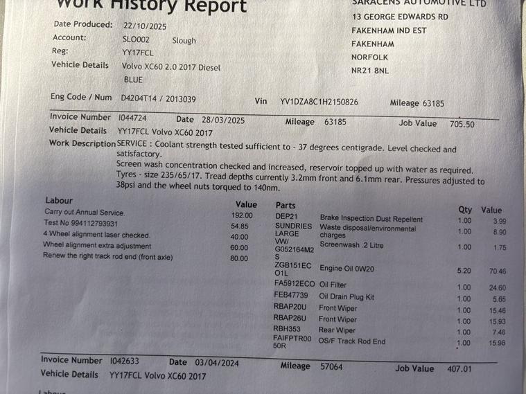 This 2017 Volvo XC60 D4 SE Nav boasts an impressive MOT valid until March 2026 and a clear vehicle history check, offering peace of mind for its next owner. This stylish SUV features a 2.0L Euro 6 diesel engine, known for its efficiency and smooth performance. Inside, youll find comfortable Leather Faced Off Black upholstery, a Bluetooth handsfree system for seamless connectivity, and electronic climate control with an air quality system to ensure a pleasant cabin environment. The SE Nav trim also includes auto on headlights and rear park assist, making every journey more convenient and safer. With only 68, 464 miles on the clock, this XC60 is exceptionally low mileage for its age. Its fuel economy is a standout feature, achieving an excellent 63 mpg, which indicates it is more economical than many similar vehicles. Furthermore, its low CO2 emissions contribute to a more environmentally friendly drive. For those who appreciate performance, the 0-60mph acceleration in just 7.6 seconds shows this Volvo offers a responsive and engaging driving experience, demonstrating its superiority over other vehicles in its class.
