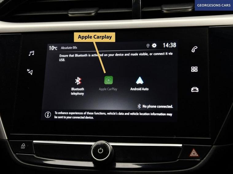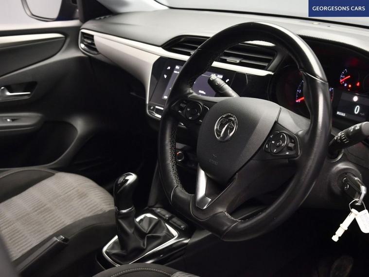 The Vauxhall Corsa 1.2 Design combines a lively 1.2-litre petrol engine with 75hp, delivering 0-62mph in 13.2 seconds and up to 53.3mpg in this front-wheel-drive setup with a precise 5-speed manual gearbox. The Design trim brings sharp looks with 16-inch alloys and a modern interior. Stay connected with Apple CarPlay, Bluetooth and DAB radio. Stay comfortable with air conditioning. Cruise control with speed limiter and lane assist make every journey relaxed and safer. The practical five-door hatchback includes a generous 309-litre boot.