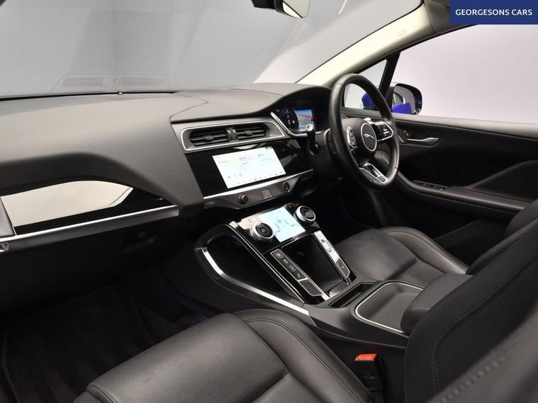 ThIS Jaguar I-Pace 400 S combines dual electric motors with 400hp, delivering 0-62mph in 4.8s and up to 292 miles WLTP range in this all-wheel-drive setup with instant single-speed transmission. The S trim offers premium luxury with 18-inch alloys and a high-grade interior. Enjoy the Meridian sound system, while integrated Apple CarPlay, Bluetooth and DAB radio keep you connected. Parking is effortless with reverse camera and parking sensors. Stay warm with heated windscreen and heated steering wheel. Adaptive cruise control, lane assist, selectable drive modes and push-button start deliver refined, stress-free grand touring every day. The stylish five-door SUV includes a 505-litre boot.