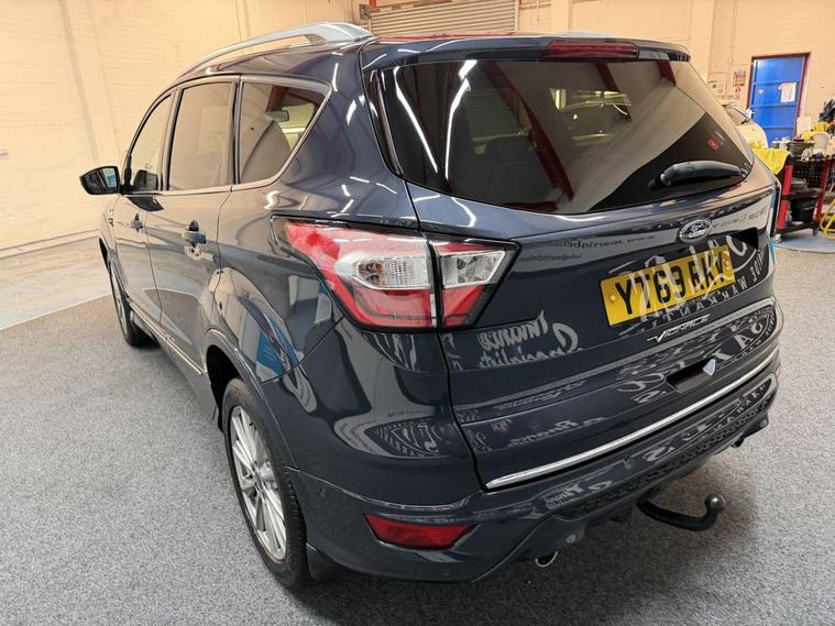 69 FORD KUGA 2.0 TDCI ECOBLUE VIGNALE 2WD Finished in Blue Panther metallic with full black leather .Genuine 83000 miles one owner with full service history.Viewing and test drive essential comes with reverse camera sat nav dab radio media apple play cruise privacy climate heated seats. Please take the time to check our feedback & reviews .We have all the correct paperwork , handbooks & 2 keys.Everything in good working order drives without fault .Car will be sold with fresh service , full mot , warranty, 12 months AA cover, & HPI certificate.We welcome any inspection OUTRIGHT PRICE £11290 SALES LINE 01388306174 EMAIL info dealer's website WEB dealer's website