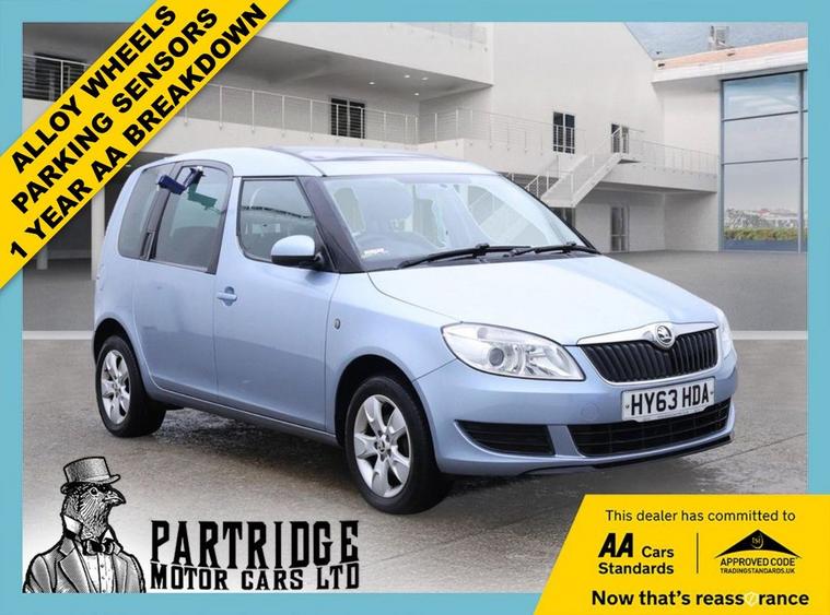 HPI CLEAR, 10 PREVIOUS SERVICES, MOT UNTIL 19.09.2026, SUPPLIED WITH NEW SERVICE, PARKING SENSORS, AIR CONDITIONING, ALLOY WHEELS, PANORMAIC ROOF, ONLY 2 PREVIOUS OWNERS, 5 DOOR, MANUAL, 3 MONTHS WARRANTY, 1 YEAR AA BREAKDOWN, AA DEALER **2013 Skoda Roomster 1.2 TSI SE: 10 Services, Pan Roof, Long MOT! AA Approved!** ******** A fantastic opportunity to own one of the most versatile family cars ever designed. This 2013 Skoda Roomster is a truly exceptional example, boasting an incredible service history with **10 previous services** and having had just **2 previous owners** from new. Finished in the distinctive **Shark Blue** metallic, this SE model features the stunning **Panoramic Glass Roof** and is powered by the punchy yet economical 1.2 TSI engine. ******** This vehicle has been meticulously maintained and will be fully prepared by our workshop. To continue its superb history, it will be supplied with a **brand new service** and a very long **MOT valid until September 19th, 2026**. ******** **Key Features:** *** **1.2 TSI Petrol Engine (86bhp)**: A brilliant turbocharged engine offering zippy performance and excellent fuel economy. *** **Panoramic Glass Roof**: Creates a bright and airy atmosphere for all passengers. *** **Incredible Service History**: A staggering record of 10 previous services. *** **VarioFlex Seating System**: Slide, recline, fold, or remove rear seats individually for van-like practicality. *** **Rear Parking Sensors**: Makes parking simple and stress-free. *** **Air Conditioning**: Keeps the cabin cool and comfortable. *** **Alloy Wheels**: Stylish 15-inch alloys. *** **Shark Blue Metallic**: A rare and eye-catching colour. ******** **Buy with Confidence:** *** **HPI Clear**: Verified history check for your peace of mind. *** **Excellent Provenance**: Just 2 previous owners and huge service history. *** **Supplied with a New Service**: Freshly prepared by our expert mechanics. *** **Long MOT (Until 19/09/2026)**: A long MOT certificate is supplied. *** **3 Months Warranty**: Comprehensive cover included. *** **1 Year Breakdown Cover**: Nationwide roadside assistance included. *** **AA Approved Dealer**: Purchase from a trusted dealership inspected to AA standards. ******** **Partridge Motor Cars - Your Trusted AA Dealer:** At Partridge Motor Cars, we pride ourselves on our exceptional standards. Every vehicle undergoes a meticulous inspection and preparation process to ensure it meets our high expectations. Were 5-star rated for a reason! ******** **Interested in this Skoda Roomster?** *** Schedule a viewing and test drive today! Call Partridge Motor Cars at **01403485928** or visit our website at * dealer's website *** Finance Available: Drive away today with flexible financing options. *** Part Exchange Welcome: Trade in your old car for a great deal on this Skoda Roomster. ******** A uniquely practical family car with an unbeatable history. Fully prepared and ready for its next adventure!