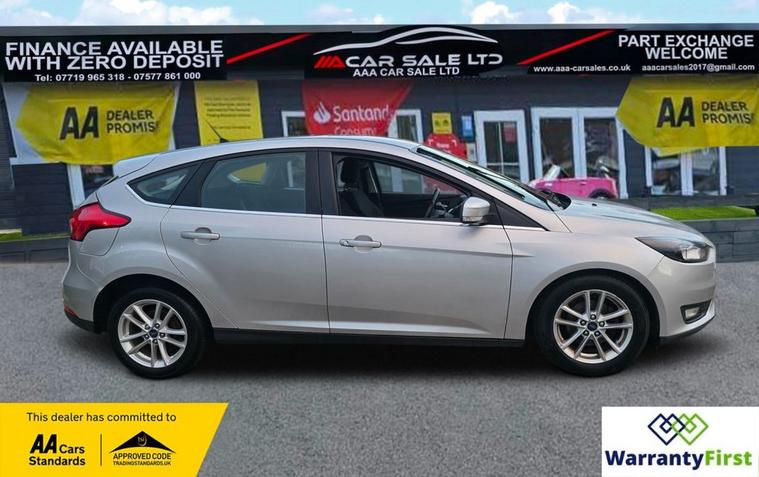 **AAA CAR SALES DARLINGTON LTD HAVE THE PLEASURE TO PRESENT THIS FORD FOCUS 1.0T EcoBoost Zetec Hatchback 5dr Petrol Manual Euro 6 (s/s) (125 ps) in MOONDUST SILVER PAINTWORK, SERVICE HISTORY - SERVICED AT 4K, 7K, 10K, 18K, 23K, 31K, 41K, 51K, 66K AND SERVICED BY OUR TEAM AT 75K. ALL OUR CARS GO THROUGH 72 POINT INSPECTION, ALL OF OUR CARS COME WITH 12 MONTHS AA BREAKDOWN COVER, FRESH MOT WITHOUT ADVISORIES, INTERIM SERVICE, HPI CHECKED VIA EXPERIAN, 3 MONTHS WARRANTY WITH THE OPTION TO UPGRADE ***AUTOTRADER CUSTOMER SERVICE AWARD 2019, 2020, 2021, 2022 2023 & 2024 YEAR ON YEAR***, WE ARE OPEN 7 DAYS A WEEK FOR YOUR CONVIENIENCE, CALL 01325950841 OR EMAIL US AT hello dealer's website or visit our website dealer's website , Service history, Clean bodywork, Cloth interior - Clean Condition, Tyre condition Excellent, YOU CAN BUY WITH FULL CONFIDENCE FROM AAA CARS CHECK OUR AUTOTRADER REVIEWS FOR FULL PEACE OF MIND,