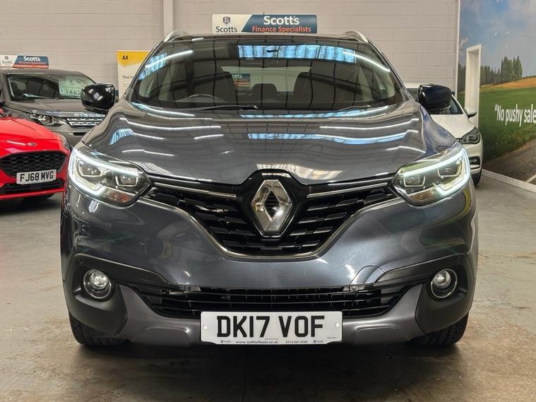 Scotts of Leeds used Car Sales are pleased to offer this RENAULT KADJAR 1.5 dCi Signature Nav SUV 5 Door Diesel Automatic in Grey. The car is in good condition throughout, in a lovely colour combination and a great specification including Satellite Navigation, Cruise control, Speed limiter, Bluetooth, AUX and USB, DAB radio, Front and Rear parking sensors, automatic lights and wipers, Bose sound, voice command, isofix, Electric windows, Keyless entry, Pushbutton start, Panoramic roof, half leather seats, alloy wheels, and much much more. The car will be supplied with an up to date service record having just been serviced in our Workshop, an MOT until November 2026 and 2 Keys ready to drive away. £20 Road Tax and great MPG. 3 MONTH NATIONWIDE WARRANTY provided with all vehicles. NATIONWIDE DELIVERY also available. A guaranteed 12 Months MOT can be added for an extra £100. DISCLAIMER: The above specification is true and correct. Any other specification listed elsewhere can sometimes be incorrect. Please check with Sales Executive to clarify this if needed prior to purchase.
