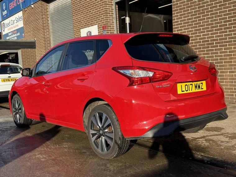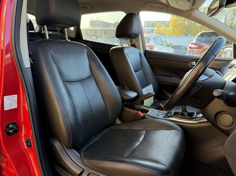 Scotts of Leeds used Car Sales are pleased to offer this NISSAN PULSAR 1.2 DIG-T Tekna Hatchback 5 Door Petrol Manual in Red. The car is in good condition throughout, in a lovely colour combination and a great specification including Satellite navigation, Heated black leather seats, Bluetooth, Cruise control, DAB digital radio, Automatic lights & wipers, Reverse camera, USB point, Aux point, Privacy glass, Electric folding mirrors, Electric windows, 6 speed gearbox, Drivers armrest, CD player, Isofix, Alloy wheels and much much more. 1 Former Keeper supplied with an up to date service record including 4 services, an MOT until December 2026 and 2 Keys ready to drive away. 3 MONTH NATIONWIDE WARRANTY provided with all vehicles. NATIONWIDE DELIVERY also available. A guaranteed 12 Months MOT can be added for an extra £100. DISCLAIMER: The above specification is true and correct. Any other specification listed elsewhere can sometimes be incorrect. Please check with Sales Executive to clarify this if needed prior to purchase.