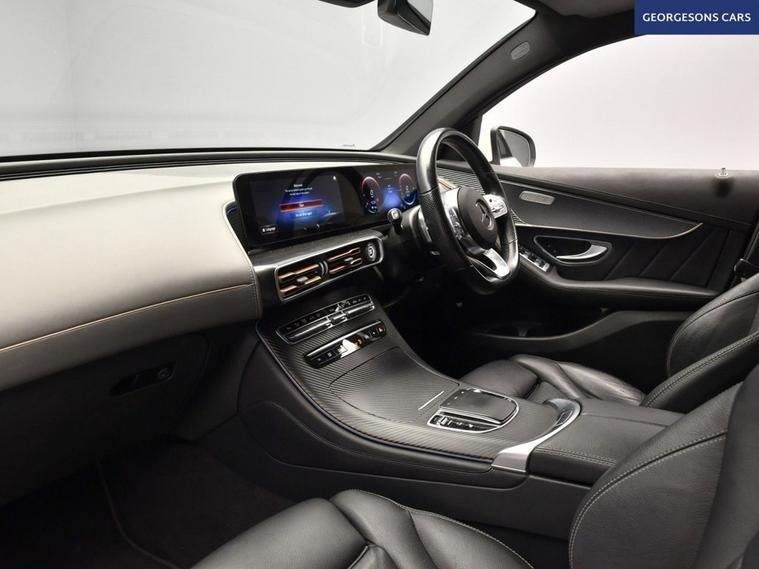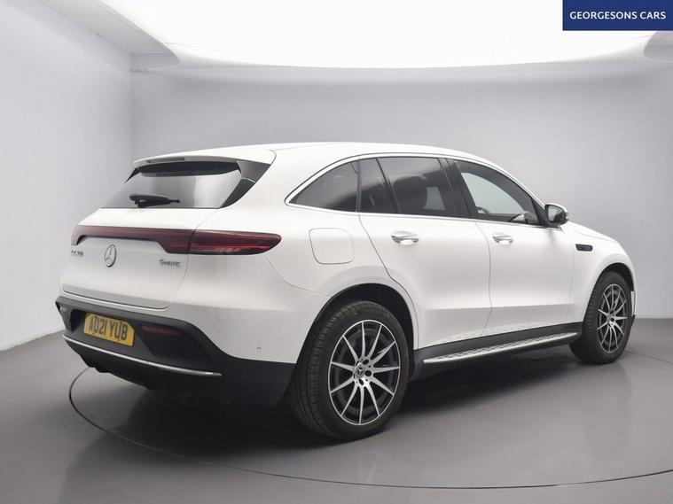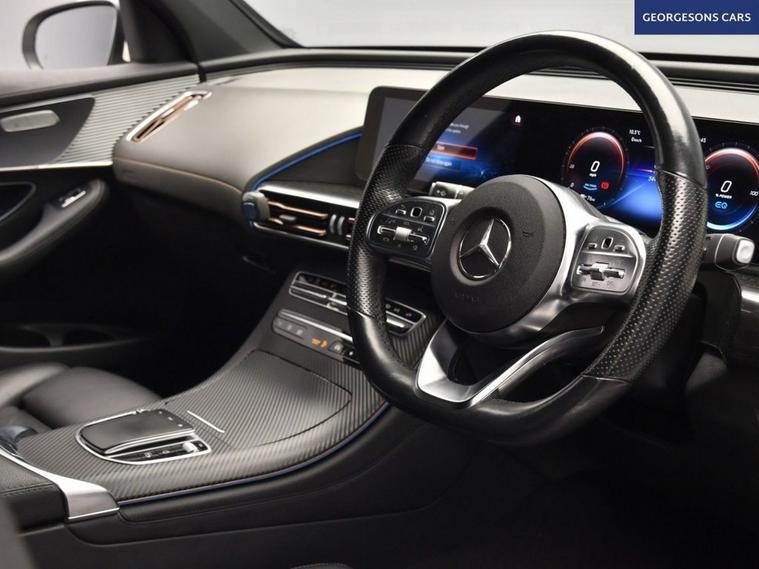 The Mercedes-Benz EQC 400 AMG Line combines dual electric motors with 408hp, delivering 0-62mph in 5.1s and up to 255 miles WLTP range in this all-wheel-drive 4MATIC setup with instant single-speed transmission. The AMG Line trim brings bold styling with a premium interior. With one owner, this EQC is in excellent condition. Integrated satellite navigation, Bluetooth and DAB radio keep you connected. Parking is effortless with reverse camera and parking sensors. Stay warm with heated front seats and dual-zone climate control. Cruise control, speed limiter, lane assist and blind spot assist deliver relaxed, safe EV touring every day. The spacious five-door SUV includes a 500-litre boot.