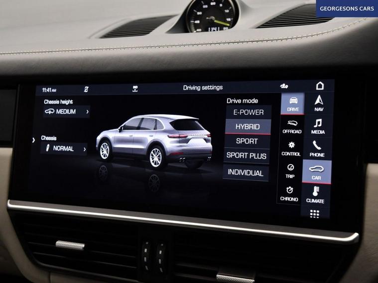 This Porsche Cayenne E-Hybrid delivers a supercharged 3.0-litre V6 plus electric motor for a total 462hp, 0-62mph in 5.1 seconds, up to 28 miles pure-electric range and an official 83.1mpg in this permanent 4WD setup with lightning-fast 8-speed TiptronicS transmission. Riding on striking 21-inch RS Spyder alloys, this one-owner example with four services (three at Porsche main dealer) is in superb condition and come with over £17, 000 of factory extras. Enjoy an airy cabin with the panoramic glass roof, crystal-clear sound from the Bose surround system, and seamless connectivity via Apple CarPlay, Bluetooth, DAB and widescreen sat-nav. Parking is effortless with 360-degree camera, sensors and electric tailgate. Stay warm with heated seats and heated steering wheel, while adaptive cruise, head-up display, blind-spot monitoring, lane-change assist, electric memory seats and paddle-shift gears make every drive relaxed and safe.