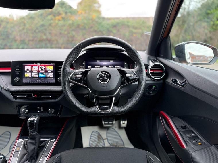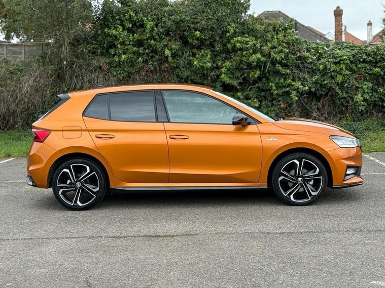 Here for sale at Leigh Cars Ltd we are delighted to present this lovely 1 owner from new low mileage ULEZ EXEMPT Skoda Fabia 1.5 TSI Monti Carlo 5 door 7 speed DSG automatic hatchback finished in stunning phoenix orange paint with over £2500 of RARE factory options and contrasting black badges grill and mirror caps, making this one really stand out from the crowd! This wonderful example comes with great service history - 2 services in total, last completed in December 2025. As part of our thorough pre sale preparations the car has been through a vehicle health check with the 1st MOT not due until September 2026. This vehicle also benefits from the remainder of the Skoda manufacture warranty that expires September 2026. This 1 owner from new vehicle comes well equipped with some amazing factory specification totalling over £3000!! including upgraded Winter Pack - Heated Seats + Steering Wheel, upgraded Front + Rear parking Aid With Rear Parking Camera, upgraded 18 Alloy Wheels - Libra - Black Metallic brushed. It also comes with a whole host of standard specification including Satellite Navigation capability with Apple Car Play and Android Auto - SmartLink, Virtual Cockpit 10.25 Digital Dash, Speed Limiter, Automatic Lights and Wipers, Heated Windscreen, DAB radio, Climate Control with Air Conditioning, Bluetooth Connectivity, Electric Windows + Mirrors, Remote Central Locking, 2 keys + much much more. This would make an ideal car for any growing family with the 5 door practicality or maybe a 1st car with low insurance costs. The road tax is only £195 per year and average fuel consumption of 50.9mpg, so is nice and economical to run and is also ULEZ exempt. Save ££££ from new and opt for this low mileage example with some impressive factory specification, not to mention the quality VAG build quality at a fraction of the price of its Volkswagen and Audi counterparts. Book in your test drive today and see what its all about... As we are an AA accredited dealer you will receive 12 months complimentary AA roadside assistance. AA warranty packages available up to 2 years and superb low rate zero deposit finance deals available today. Why not give us a call or visit our website finance calculator to see how affordable your new car could be. We are rated 5 stars by our customer reviews on Autotrader, Facebook, Google, Trustpilot and Car Gurus so you can be assured you are dealing with a company that truly cares about the customer. We take great pride in providing a personal quality service like no other and guarantee to make your purchase a smooth and pleasant experience. Please read our customer reviews online to see what they have to say about the level of service they received from us when purchasing a car. We have recently been awarded with the accolade of Car Gurus Top Rated Dealer 2023 - thats 6 years running now! Buy Your Car From The Best In Essex. Viewing strictly by appointment only!