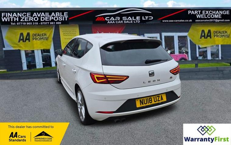 **AAA CAR SALES DARLINGTON LTD HAVE THE PLEASURE TO PRESENT THIS SEAT LEON 1.4 TSI FR Technology Hatchback 5dr Petrol Manual Euro 6 (s/s) (125 ps) WHITE PAINTWORK.. TIMING BELT & WATERPUMP REPLACED DEC 2025 @ 72K.... SERVICE HISTORY = 6K, 14K, 18K, 30K, 38K AND A SERVICE BY OUR TEAM AT 72K....2 KEYS +12 MONTHS AA COVER, 2 KEYS, ALL OUR CARS GO THROUGH 72 POINT INSPECTION, ALL OF OUR CARS COME WITH 12 MONTHS AA BREAKDOWN COVER, FRESH MOT WITHOUT ADVISORIES, INTERIM SERVICE ** HPI CHECKED VIA EXPERIAN, 3 MONTHS WARRANTY WITH THE OPTION TO UPGRADE **AUTOTRADER CUSTOMER SERVICE AWARD 2019, 2020, 2021, 2022, 2023 & 2024 YEAR ON YEAR***, WE ARE OPEN 7 DAYS A WEEK FOR YOUR CONVIENIENCE, CALL 01325950841, visit our website dealer's website CAN BUY WITH FULL CONFIDENCE FROM AAA CARS CHECK OUR AUTOTRADER REVIEWS FOR FULL PEACE OF MIND,