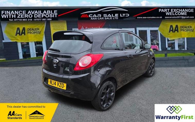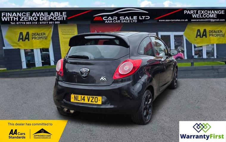 **AAA CAR SALES DARLINGTON LTD HAVE THE PLEASURE TO PRESENT THIS FORD KA 1.2 Grand Prix III Hatchback 3dr Petrol Manual Euro 6 (s/s) (69 ps) IN MIDNIGHT BLACK PAINTWORK, SERVICE HISTORY - SERVICED AT 13K, 16K, 19K, 23K, 46K, 58K, 64K, 70K AND SERVICED BY OUR TEAM AT 71K, FRESH MOT + SERVICE , 2 KEYS, ALL OUR CARS GO THROUGH 72 POINT INSPECTION, ALL OF OUR CARS COME WITH 12 MONTHS AA BREAKDOWN COVER, UP TO 12 MONTH MOT WITHOUT ADVISORIES, INTERIM SERVICE, HPI CHECKED VIA EXPERIAN, 3 MONTHS WARRANTY WITH THE OPTION TO UPGRADE ***AUTOTRADER CUSTOMER SERVICE AWARD 2019, 2020, 2021, 2022, 2023 and 2024 YEAR ON YEAR***, WE ARE OPEN 7 DAYS A WEEK FOR YOUR CONVIENIENCE, CALL 01325950841 OR EMAIL US AT hello dealer's website or visit our website dealer's website , Service history, Clean bodywork, Cloth interior - Clean Condition, Tyre condition good, YOU CAN BUY WITH FULL CONFIDENCE FROM AAA CARS CHECK OUR AUTOTRADER REVIEWS FOR FULL PEACE OF MIND,