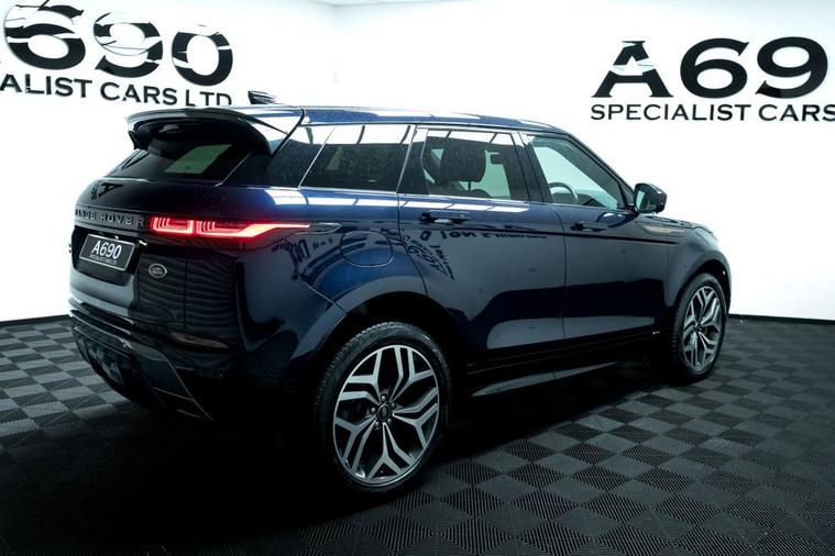 A690 Specialist Cars is proud to present this stunning 2021 Range Rover Evoque 1.5 P300e 12.2kWh R-Dynamic HSE SUV 5dr Petrol Plug-in Hybrid Auto finished in Portofino Blue. Discover the perfect fusion of advanced hybrid technology, modern luxury, and striking design with this exceptional Evoque 1.5 P300e. As one of Land Rovers most innovative models, this plug-in hybrid SUV delivers impressive efficiency without compromising on performance or presence. Powered by a sophisticated 1.5-litre petrol engine coupled with a 12.2kWh electric motor, the P300e offers smooth, spirited acceleration and whisper-quiet electric driving for shorter journeys. Its automatic transmission ensures effortless transitions, while multiple driving modes, including EV-only capability, provide flexibility for city commutes, weekend escapes, and everything in between. Enjoy remarkable fuel economy and reduced emissionsall wrapped in the unmistakable confidence of the Range Rover name. Step inside and youll be immediately immersed in refinement. The R-Dynamic HSE trim elevates the cabin with premium leather upholstery, heated and cooled seats, ambient interior lighting, and finely crafted materials throughout. Dual touchscreens with intuitive controls, smartphone integration, and an immersive Meridian sound system keep you connected and entertained on every drive. The Evoques exterior styling is bold and contemporary, with sleek lines, distinctive R-Dynamic detailing, and signature LED lighting that commands attention from every angle. Its compact SUV proportions offer urban agility while still delivering the elevated driving position and road presence expected from the Range Rover family. Practicality comes naturally, with a spacious 5-door layout, versatile boot space, and advanced safety and driver-assistance featuresincluding adaptive cruise control, 360 cameras, and lane-keeping systemsdesigned to give you complete confidence wherever your journey leads. Well maintained and presented in great condition, this 2021 Evoque P300e R-Dynamic HSE offers a rare combination of efficiency, luxury, and capability. Experience the future of premium drivingcontact us today to arrange your viewing & test drive.