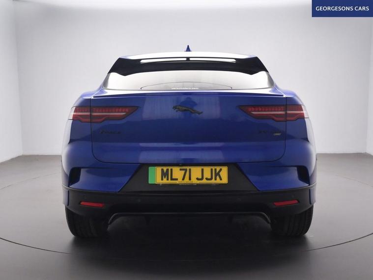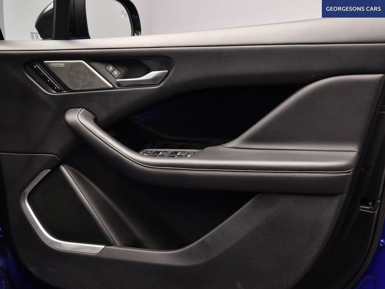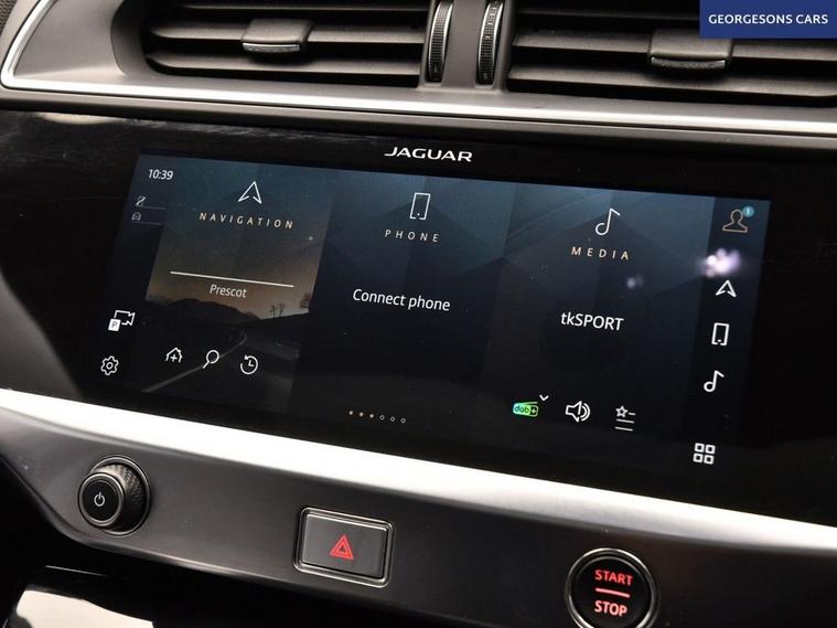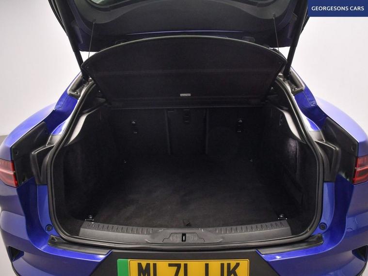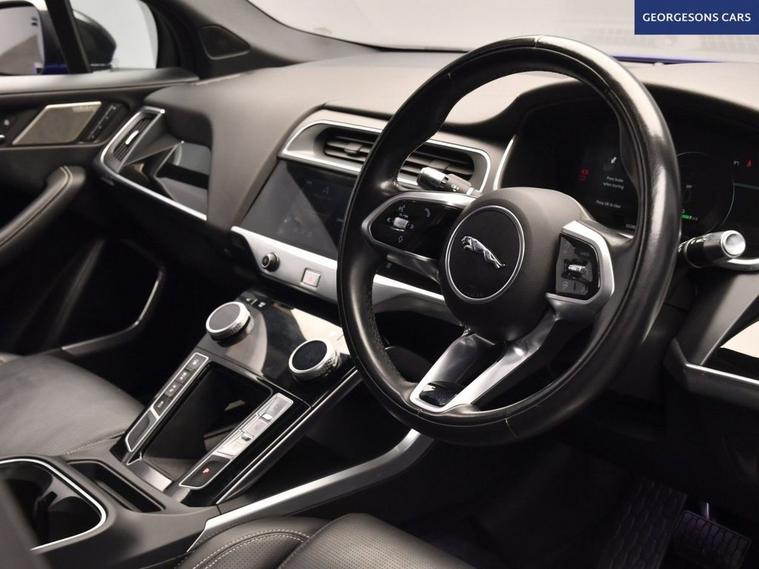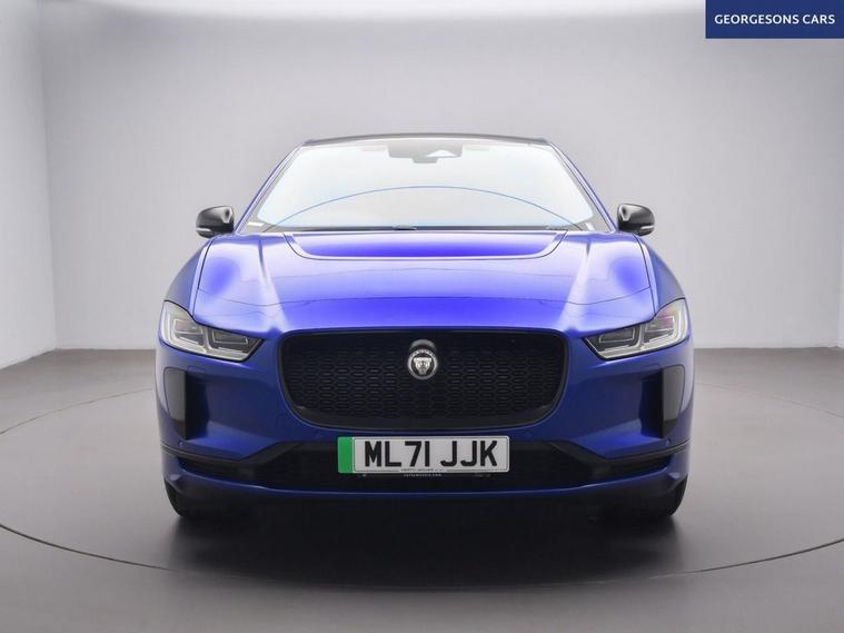 The Jaguar I-Pace 400 HSE Black combines dual electric motors with 400hp, delivering 0-62mph in 4.8s and up to 292 miles WLTP range in this all-wheel-drive setup with instant single-speed transmission. The flagship HSE Black edition brings 22-inch gloss-black alloys, black exterior pack and full luxury specification. With one owner and two services, this I-Pace is in superb condition. Enjoy the panoramic glass roof and electric tailgate, while front and rear heated seats, heated windscreen and heated steering wheel keep everyone cosy. Head-up display, adaptive cruise control, speed limiter, lane assist and selectable drive modes deliver effortless, safe grand touring. Immerse yourself in premium sound, stay connected with Apple CarPlay, Bluetooth, DAB and satellite navigation. Parking is effortless with reverse camera and parking sensors. Electric heated memory seats ensure perfect positioning every time. The spacious five-door SUV includes a 505-litre boot.