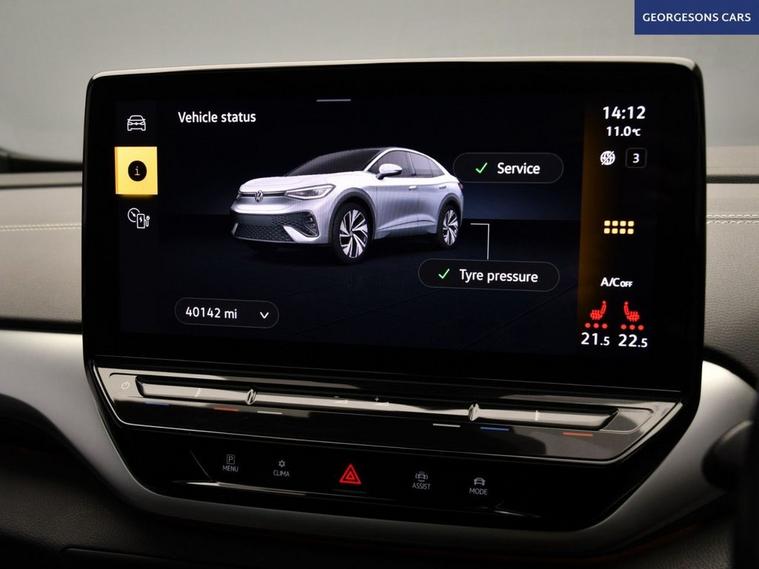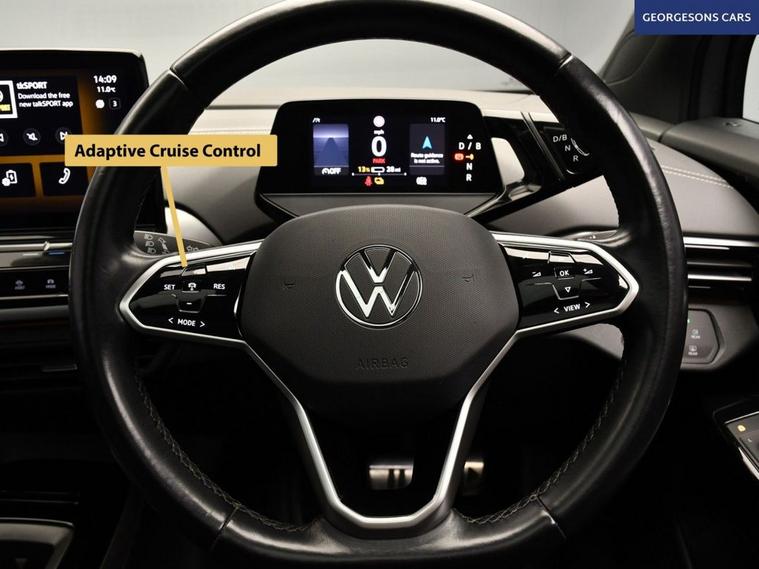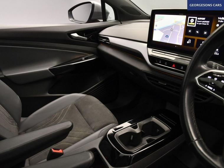 The Volkswagen ID.5 Pro 77kWh Style combines a powerful electric motor with 286hp, delivering 0-62mph in 6.7 seconds and up to 323 miles WLTP range in this rear-wheel-drive setup with a smooth single-speed automatic transmission. The Style trim brings elegant coupe-SUV styling with a premium interior. With one owner, this ID.5 is in excellent condition. Enjoy the expansive panoramic glass roof for an airy cabin feel, while integrated satellite navigation, Apple CarPlay, Bluetooth and DAB radio ensure seamless connectivity. Parking is effortless with reverse camera, parking sensors and park assist. Stay comfortable with dual-zone climate control, heated front seats and heated steering wheel. Adaptive cruise control with speed limiter and lane assist enhance safety and relaxation on every journey. The stylish five-door coupe-SUV includes a 549-litre boot for practicality.