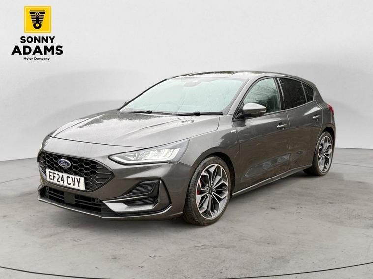 This stylish and dynamic Ford Focus ST-Line X combines sporty design, advanced technology, and hybrid efficiency. Powered by Fords responsive 1.0-litre EcoBoost Mild Hybrid engine, it delivers 125 ps while maintaining impressive fuel economy and low emissions, making it an ideal choice for both city driving and longer journeys. The exterior design exudes confidence and athleticism, featuring 18-inch 5x3-spoke alloy wheels in High Gloss Pearl Grey, unique ST-Line body styling, a large body-coloured rear spoiler, polished twin tailpipes, red brake calipers, and LED headlights and rear lights. Finishing touches like rear privacy glass, ST-Line badging, and power-folding heated mirrors with puddle lights further enhance its premium look. Inside, the ST-Line X offers a sporty yet refined environment with full Sensico upholstery in Ebony with red stitching, sports-style front seats, and a flat-bottomed ST-Line steering wheel. The 13.2-inch SYNC4 touchscreen with integrated navigation and FordPass Connect keeps you connected on the go, while the 12.3-inch digital instrument cluster provides a crisp and modern display of key driving information. Comfort and convenience come from features such as dual-zone electronic climate control (DEATC), keyless entry and start, wireless charging, and Quickclear heated windscreen for easy starts on frosty mornings. Safety and driver assistance are well covered with Pre-Collision Assist with Autonomous Emergency Braking, Lane-Keeping Aid, Intelligent Speed Assistance, Front and Rear Parking Sensors, and Hill Start Assist. Additional features such as Cruise Control with Adjustable Speed Limiter, Selectable Drive Modes, and Sports-Tuned Suspension ensure a confident and engaging drive. Practical touches include a 60/40 split-folding rear seat, a load-through ski hatch, cupholders with sliding covers, rear armrest with cupholders, and ample boot space with a load compartment cover. This vehicle benefits from a full service history, ensuring it has been meticulously maintained throughout its life. For added peace of mind, if the MOT is under six months, well ensure a fresh MOT is completed before sale. The vehicle also comes with a standard three-month back-to-base warranty, with the option to extend it to a nationwide warranty for added reassurance. Nationwide delivery is also available. Finance Available Special 9.9% APR Offer We offer in-house finance with zero deposit options and flexible monthly payments. Apply in minutes and drive away the same day! For more details or to arrange a viewing, contact 02030183551 or email enquiries dealer's website