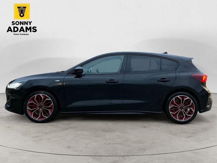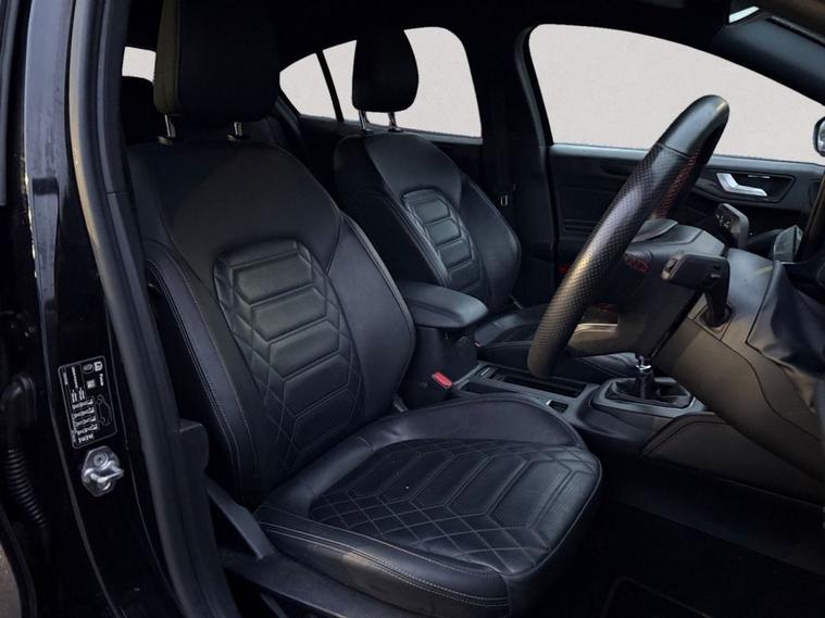 Introducing the Ford Focus 1.0T EcoBoost ST-Line X, a sporty and well-equipped hatchback offering an engaging driving experience with its efficient 125ps EcoBoost engine and slick manual gearbox. Finished in Agate Black with 18 High Gloss Pearl Grey alloy wheels, ST-Line body styling, large rear spoiler, and red brake calipers, this model delivers a bold and athletic road presence. Inside, the ST-Line X offers a premium and modern cabin featuring Full Sensico upholstery with red stitching, sports-style front seats, a sliding centre armrest, and dual-zone electronic climate control. Technology is a highlight, with the impressive 13.2 SYNC4 touchscreen navigation system, wireless charging, 12.3 digital instrument cluster, Quickclear heated windscreen, keyless entry and start, and front & rear parking sensors. The car is equipped with a wide range of safety and driver-assistance systems, including Pre-Collision Assist, Autonomous Emergency Braking, Lane-Keeping Aid, Intelligent Speed Assistance, Hill Start Assist, ESC, and multiple airbags. Comfort and practicality are boosted by heated, power-folding mirrors, LED headlights, front and rear electric windows, rear privacy glass, 60/40 split-folding rear seats, load-through ski hatch, and a mini spare wheel. Further standout features include sports-tuned suspension, selectable drive modes, ambient LED lighting, rear armrest with cupholders, and the Quickclear heated windscreen, ideal for cold mornings. This vehicle has been well maintained with a partial service history. For added peace of mind, if the MOT is under six months, well ensure a fresh MOT is completed before sale. The vehicle also comes with a standard three-month back-to-base warranty, with the option to extend it to a nationwide warranty for added reassurance. Nationwide delivery is also available. Finance Available Special 9.9% APR Offer We offer in-house finance with zero deposit options and flexible monthly payments. Apply in minutes and drive away the same day! For more details or to arrange a viewing, contact 02030183551 or email enquiries dealer's website