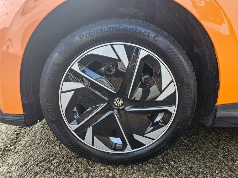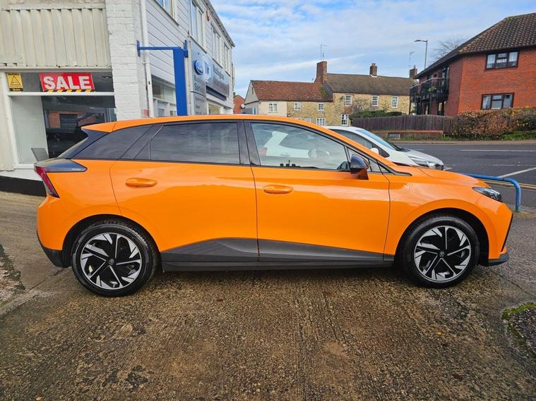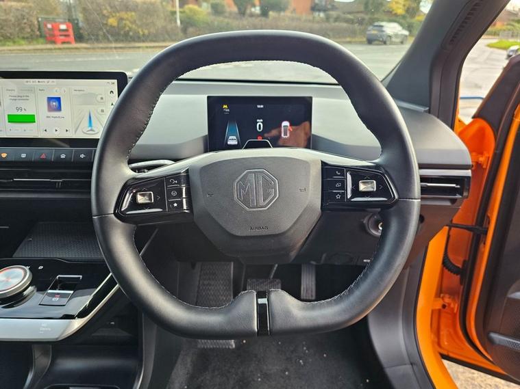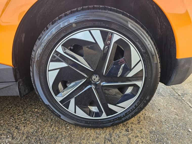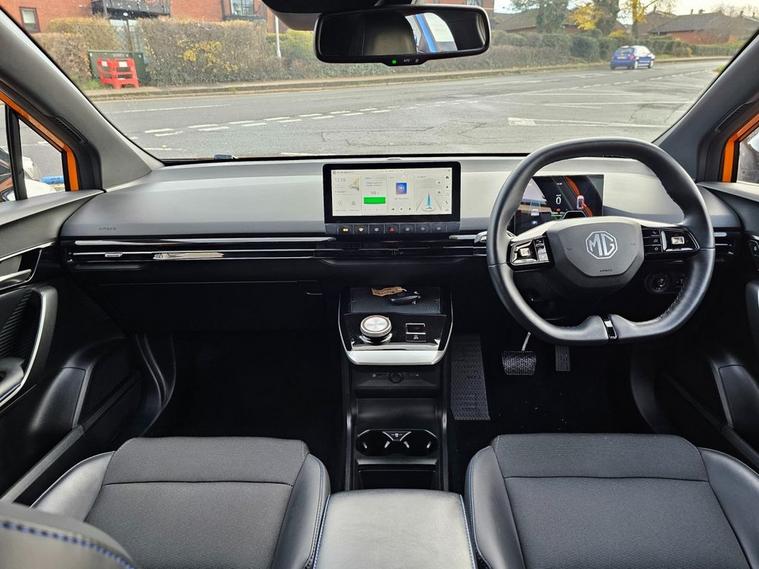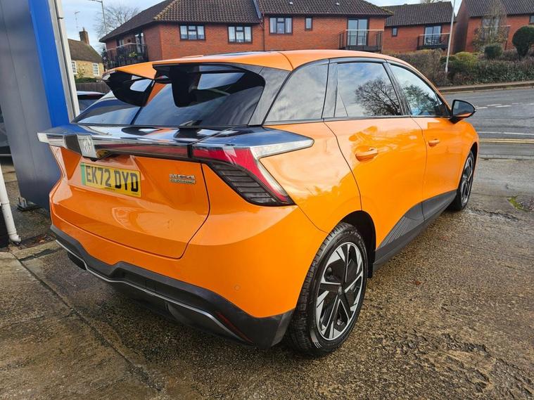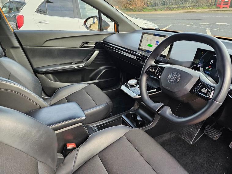 This 2022 MG4 Trophy Long Range is a fully electric hatchback with a 64kWh battery and a WLTP range of up to 270 miles. It runs a 150kW motor (200bhp) with rear-wheel drive and offers simple, smooth performance suitable for everyday use. The interior includes a 10.25 touchscreen, a digital driver display, Apple CarPlay, Android Auto, a wireless phone charger, heated front seats, and a heated steering wheel. There is seating for five and a practical hatchback boot area. The Trophy trim includes a 360 parking camera, rear parking sensors, adaptive cruise control, lane-keeping assistance, blind-spot monitoring, and other standard driver-assistance features. Charging can be done via regular AC home charging or rapid DC charging, with 1080% achievable in roughly half an hour on a suitable rapid charger.
