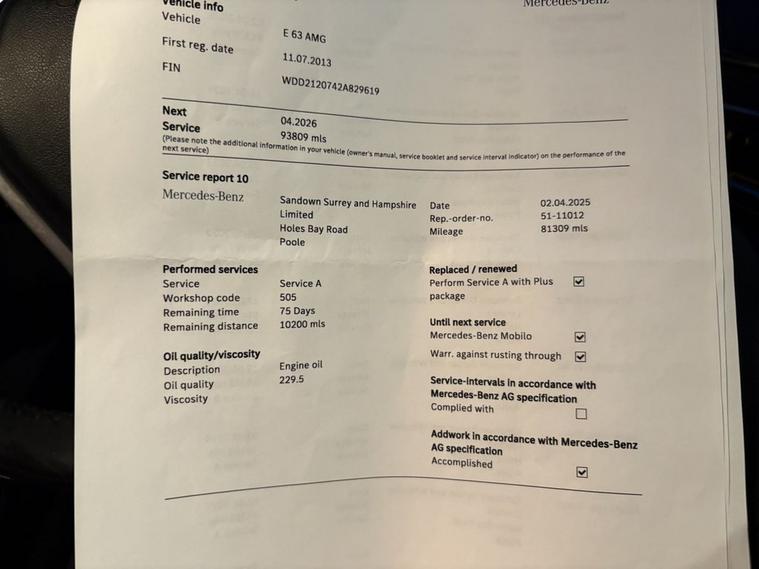 This 2013 Mercedes Benz E Class E63 V8 BiTurbo AMG boasts an MOT valid until September 2026 and a clear vehicle history check, offering you peace of mind. This AMG trim model features a powerful 5.5 litre petrol engine, meeting Euro 6 emissions standards. Inside, youll find a luxurious cabin equipped with a panoramic sunroof, a Harman Kardon Logic 7 surround sound system, and luxury automatic climate control. For added comfort and convenience, it includes heated front seats and a Bluetooth interface for hands free telephone calls. Experience exhilarating performance with this E63 AMG, capable of accelerating from 0 to 60 miles per hour in just 4.2 seconds. This impressive acceleration figure highlights the vehicles superior performance compared to other cars in its class. The combination of its potent V8 BiTurbo engine and sophisticated AMG engineering ensures a dynamic and engaging driving experience.