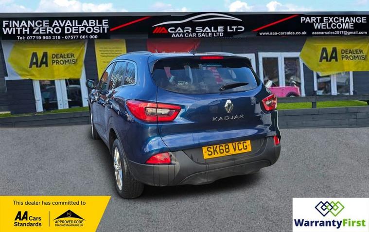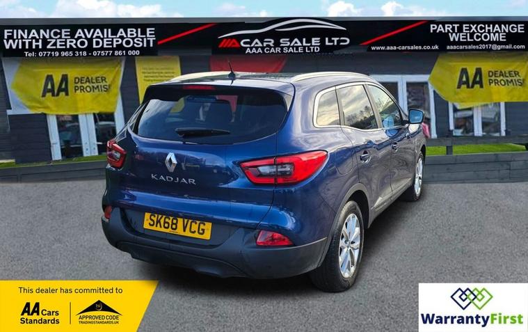 **AAA CAR SALES DARLINGTON LTD HAVE THE PLEASURE TO PRESENT THIS RENAULT KADJAR 1.3 TCe Dynamique Nav SUV 5dr Petrol Manual Euro 6 (s/s) (140 ps) IN COSMOS BLUE PAINTWORK. FULL SERVICE HISTORY - SERVICED AT 6K, 12K, 18K, 36K, 51K, 67K AND SERVICED BY OUR TEAM AT 83K. 2 KEYS+ALL OUR CARS GO THROUGH 72 POINT INSPECTION, ALL OF OUR CARS COME WITH 12 MONTHS AA BREAKDOWN COVER, UP TO 12 MONTH MOT WITHOUT ADVISORIES, INTERIM SERVICE, HPI CHECKED VIA EXPERIAN, 3 MONTHS WARRANTY WITH THE OPTION TO UPGRADE **, **NATIONWIDE DELIVERY AVAILABLE ON OUR OWN TRANSPORTER AT COMPETITIVE RATES**, ***AUTOTRADER CUSTOMER SERVICE AWARD 2019, 2020, 2021&2022 YEAR ON YEAR***, WE ARE OPEN 7 DAYS A WEEK FOR YOUR CONVIENIENCE, CALL 01325950841, visit our website dealer's website CAN BUY WITH FULL CONFIDENCE FROM AAA CARS CHECK OUR AUTOTRADER REVIEWS FOR FULL PEACE OF MIND,