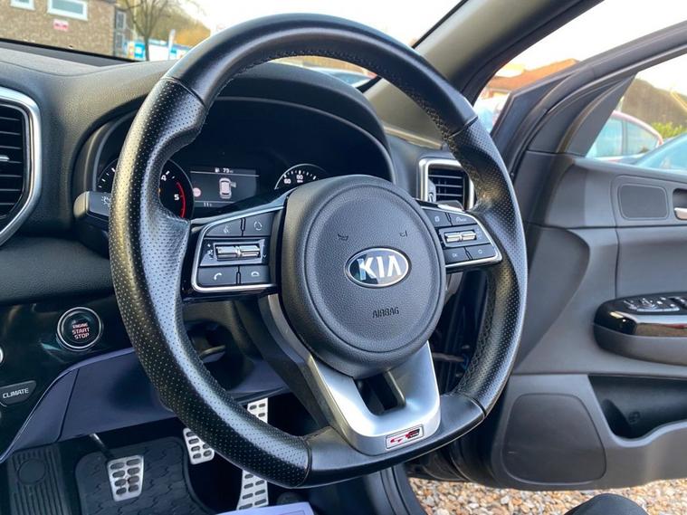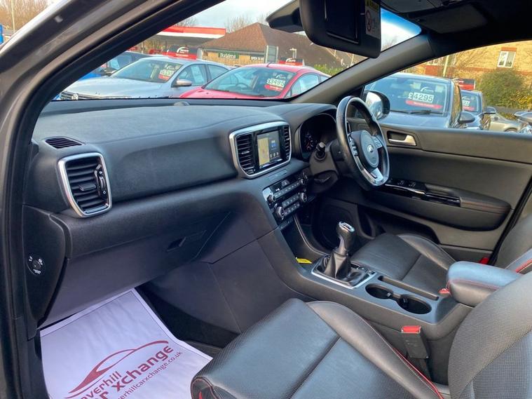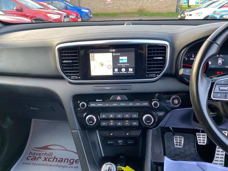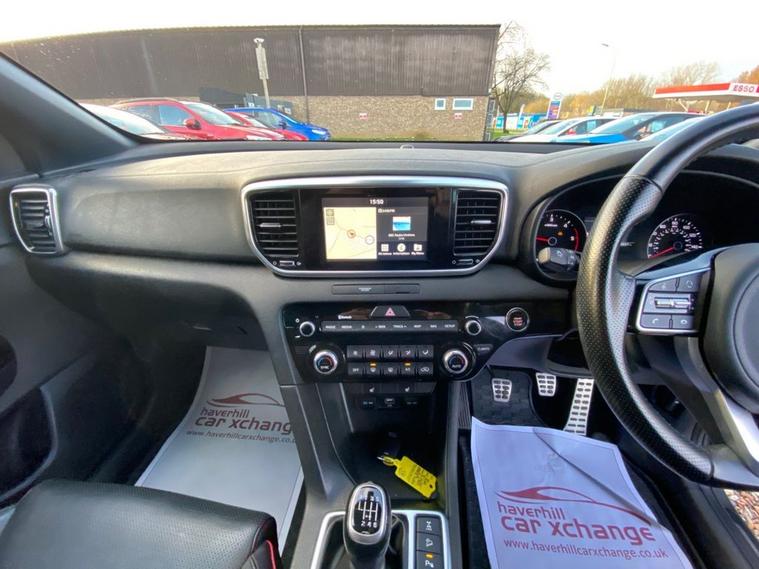 LONG MOT UNTIL 26.10.2026+7 INCH TOUCHSCREEN SATELLITE NAVIGATION SYSTEM+DAB DIGITAL RADI+BLUETOOTH WITH MUSIC STREAMING+DUAL ZONE CLIMATE CONTROL AIR-CONDITIONING+LUXURIOUS HEATED LEATHER UPHOLSTERY+AUTOMATIC HEADLIGHT ACTIVATION+RAIN-SENSING WINDSCREEN WIPERS+FRONT & REAR PARKING ASSISTANCE WITH PARKING CAMERA+METALLIC DARK PENTA METAL PAINT+19 INCH ALLOY WHEELS. At Haverhill Car Xchange we would like to offer you our Kia Sportage GT-Line SUV which has been finished in a metallic Dark Penta Metal paint, luxurious Black HEATED Leather upholstery with Red Piping and Stitching. Excellent Specification Includes a 7 Inch Touchscreen Satellite Navigation System with European Mapping-Traffic Messaging Channel, Kia Connected Services Featuring TOMTOM-Traffic-Speed Cameras-Local Search and Weather Updates, DAB Digital Radio-Apple CarPlay/Android Auto with Voice Control, Bluetooth with Music Streaming, USB Ports in Front and Rear, 12 Volt Power Socket in Front and Rear Consoles, Automatic Dual Zone Climate Control Air-Conditioning, Lane Keep Assist, Gear Shift Indicator, Cruise Control with Speed Limiter, All-Round Electric Windows with Drivers Auto Up/Down Function, Body Coloured Bumpers/Door Handles/Rear Spoiler and Door Mirrors with Integrated Side Indicators, Aluminium Pedals, Chrome Window Surrounds, Dark Chrome Front Bumper Insert and Grille Surround, Automatic Headlight Activation, Silver Painted Front and Rear Skid Plates, LED Daytime Running Lights, LED Bi-Function Headlights, LED Tail Lights, LED Ice-Cube Front Fog Lights, Welcome and Follow-Me-Home Headlight Function, Rain-Sensing Windscreen Wipers, Front and Rear Parking Assistance with Parking Camera, Leather Multifunctional Steering Wheel, Tinted Glass, 19 Inch Alloy Wheels, Power Steering, Hill Start Assist, Child Safety Rear Door Locks, ABS Breaking System, Airbags, Alarm, Immobiliser, Remote Central Locking and ISOFIX Anchorage Points for Child Seats.
