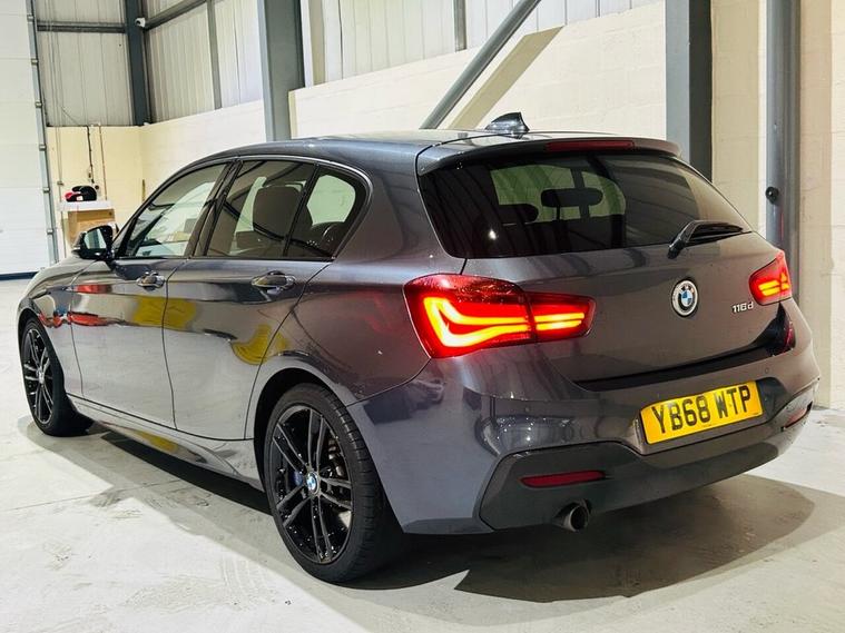 BMW 1 Series 1.5 116d M Sport Shadow Edition Hatchback 5dr Diesel Auto Euro 6 (s/s) (116 ps) Registration: YB68WTP | 98, 000 miles | Service History | Finished in Mineral Grey with Black Leather Interior A stylish and well-specified BMW 116d M Sport Shadow Edition, finished in sleek Mineral Grey with premium Black Leather upholstery. The sought-after Shadow Edition adds upgraded darkened styling, enhanced equipment and a more aggressive road presence, making this one of the most desirable trims in the 1 Series range Powered by the efficient 1.5-litre 116d diesel engine producing 116 PS, paired with a smooth automatic transmission, it offers excellent real-world economy, refined performance and low running costs. This example also benefits from Professional Navigation and Heated Leather Seats, adding further comfort and convenience Key Features 1.5-litre TwinPower Turbo diesel engine (116 PS) Automatic transmission Euro 6 ULEZ compliant Shadow Edition styling package Mineral Grey exterior Black Leather interior Professional Navigation (Pro Nav) Heated Leather Seats LED headlights & LED rear lights M Sport aerodynamic styling M Sport suspension DAB radio, Bluetooth & USB media Cruise control & speed limiter Rear parking sensors Multifunction M Sport steering wheel Privacy glass 18 M Sport Shadow Edition alloy wheels Additional Information 98, 000 miles covered Service History Combined economy around 65+ mpg Road tax: £35 per year A well-equipped and great-value BMW 116d M Sport Shadow Edition, finished in Mineral Grey with Heated Leather and Pro Nav, offering sporty styling, excellent efficiency and premium comfort.