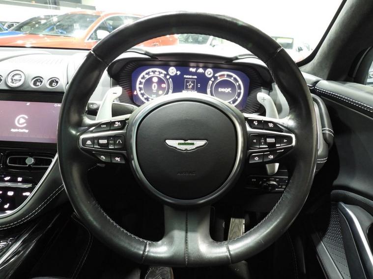 EXTENDED ASTON MARTIN WARRANTY - STUNNING DBX! ONLY 31K WITH FULL ASTON MARTIN SERVICE HISTORY - HUGE SPEC INCLUDING; LIGHTNING SILVER (SIGNATURE MATELLIC PAINT) ONYX BLACK LEATHER, ASTON MARTIN PREMIUM AUDIO, AUTO PARK ASSIST, BLIND SPOT ASSISTANCE, BLACK BOOT CARPET, POWER TILAGATE, BRAKE CALIPERS - YELLOW, AM WINGS / WORDMARK BLACK, BLACK PACK, VANEER - PIANO BLACK, GLOSS BLACK GRILL, HEADLINING ALCANTARA, SATIN SILVER JEWELLERY PACK, 23 FORGED WHEELS SATIN BLACK - COMFORT SEATS, TOUCHPAD, ELEGANT QUILT, SMOKED REAR LIGHTS, SPORTS STEERING - LIST IS ENDLESS! This 2022 Aston Martin DBX V8 offers an exceptional ownership experience with its MOT valid until March 2026. This four wheel drive model is powered by a 4.0 litre petrol engine, meeting Euro 6 emission standards. It boasts a substantial towing weight of 2700 kg, making it a versatile choice. Inside, you will find comfortable heated seats, convenient keyless entry, and a sophisticated Aston Martin Premium Audio system. For peace of mind and ease of manoeuvring, it is equipped with 360 degree parking cameras and Blind Spot Monitoring with assistance. The performance of this Aston Martin DBX V8 is truly impressive, accelerating from 0 to 60 mph in just 4.3 seconds. This rapid acceleration demonstrates its superior engineering and power compared to many other vehicles in its class. The combination of its potent V8 engine, advanced four wheel drive system, and luxurious features ensures a driving experience that is both exhilarating and refined.