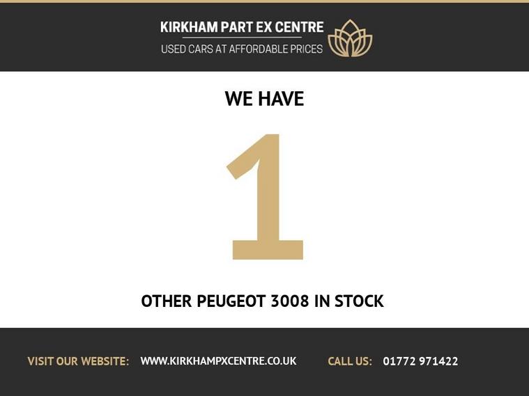 2017 Peugeot 3008 1.6 BlueHDi Allure | 30k Miles | Euro 6 | 71 MPG | Full Service History | PEUGEOT Open & Go | FOCAL Premium Hi-Fi | Wireless Charging Plate | Advanced Grip Control | 18 Alloys | Black Diamond Roof | MOT Oct 2026 | AA Inspected | 3-Year Warranty Overview 2017 Peugeot 3008 1.6 BlueHDi Allure | Diesel | Manual | Euro 6 30, 307 Miles Verified & HPI Clear Full Service History MOT Valid Until October 2026 High-Spec Allure Trim AA 128-Point Inspection Completed 3-Year Nationwide Parts & Labour Warranty Included (extendable) 12 Months FREE AA Breakdown Cover Description This 2017 Peugeot 3008 1.6 BlueHDi Allure is an outstanding low-mileage example of Peugeots award-winning SUV, having covered just 30, 307 miles. With a clear vehicle history check, full service history, and MOT valid until October 2026, it offers exceptional reassurance for its next owner. Powered by the efficient Euro 6 1.6-litre BlueHDi diesel engine, it returns an impressive 71 mpg, making it one of the most economical SUVs in its class. Low CO? emissions and a low insurance group further reduce ownership costs. The Allure trim level provides a premium and well-appointed cabin featuring: PEUGEOT Open & Go keyless entry FOCAL premium Hi-Fi sound system Smartphone wireless charging plate Advanced Grip Control system 18 Los Angeles alloy wheels Black Diamond roof for added style These high-end features make this 3008 stand out among rivals, delivering both excellent practicality and a refined, modern driving experience. With its superb efficiency, premium equipment, and exceptionally low mileage, this Peugeot 3008 Allure is a fantastic choice for families or commuters seeking comfort and value. Peace of Mind Package 3-Year Nationwide Parts & Labour Warranty (included / extendable) 12 Months FREE AA Breakdown Cover 128-Point AA Inspection Completed HPI Clear & Mileage Verified Finance & Part Exchange Flexible HP Finance Options Zero Deposit from 8.9% APR All Credit Profiles Considered Part Exchange Welcome Instant Valuations Nationwide delivery available subject to T&Cs Why Buy from Kirkham Part Exchange Centre We are a trusted, family-run AA Approved Dealer with over 30 years of motor-trade experience. We proudly serve Kirkham, Preston, Blackpool, Lytham, St Annes, Poulton, Wesham, Wrea Green, Freckleton, Warton, and the wider North West, including Lancaster, Southport, Bolton, Blackburn, Wigan, Chorley and Manchester. All vehicles are HPI clear, AA inspected and prepared to main-dealer standards for complete peace of mind. Next Steps Call 01772581814 to book your test drive or reserve today Request a personalised video walk-around Evening & weekend appointments available Nationwide delivery available subject to T&Cs