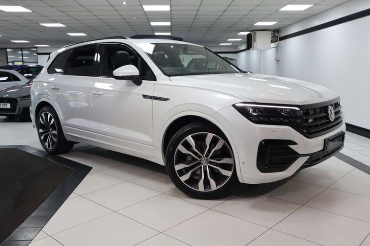 MEGA SPEC BLACK EDITION TOUAREG JUST ARRIVED INTO STOCK! ONLY ONE FORMER FROM NEW COVERING 53K BACKED WITH VW MAIN DEALER SERVICE HISTORY! INCREDIBLY SOUGHT AFTER, INCLUDES THE MAGNIFICENT 3 LITRE TDI ENGINE PRODUCING 286PS! SIMPLY STUNNING, BE QUICK! SPEC INCLUDES, SLIDE/TILT PANORAMIC GLASS ROOF, 21 INCH SUZUKA ALLOY WHEELS, PARK ASSIST INCLUDING SURROUND VIEW CAMERA, MEMORY PACKAGE (FRONT SEATS, MIRRORS), AIR SUSPENSION, INNOVISION DIGITAL COCKPIT DISPLAY, HEATED LEATHER R LINE MULTI FUNCTION STEERING WHEEL, HEATED/ELECTRIC FRONT SEATS, ADAPTIVE CRUISE CONTROL, FOUR ZONE CLIMATE CONTROL, KEYLESS ENTRY/START, LANE ASSIST, DYNAMIC ROAD SIGN DISPLAY, PREMIUM NAVIGATION MEDIA, ANDROID AUTO/APPLE CARPLAY, IQ LIGHT LED MATRIX HEADLIGHTS, LIGHTS AND VISION PACKAGE, ADVANCED HIGH BEAM CONTROL! INCREDIBLE EXAMPLE, PANORAMIC ROOF, PAN ROOF, GLASS ROOF, EXCEPTIONAL VALUE FOR MONEY, EARLY VIEWING IS ESSENTIAL TO AVOID DISAPPOINTMENT, VERY BEST COLOUR COMBINATION, COMPREHENSIVE WARRANTY OPTIONS AVAILABLE, AA BREAKDOWN COVER AVAILABLE, STUNNING SHOWROOM CONDITION, MUST BE SEEN NOT TO BE MISSED, BE VERY QUICK THIS GEM WILL SOON GO!, VIEW MORE PICS ON OUR WEBSITE, PLEASE CALL FOR FULL SPEC, SIMPLY STUNNING!