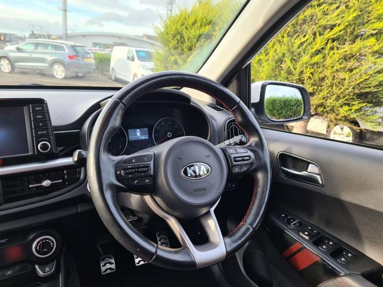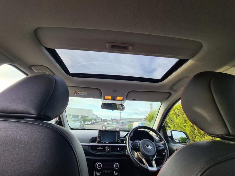 Discover this 2017 Kia Picanto GT-Line S has been well cared for by its two former keepers, last serviced at 43, 000 miles. This Kia offers excellent value with its low insurance group. This stylish model is powered by a 1.25 litre petrol engine and meets Euro 6 emission standards. Inside, youll find a host of convenient features designed to enhance your driving experience, including a wireless mobile phone charger, automatic headlight control, and Android Auto with voice control. For added comfort, this Picanto boasts a heated steering wheel and an electric sunroof, making every journey a pleasure. The Kia Picanto GT-Line S stands out with its low CO2 emissions, indicating a more environmentally conscious choice compared to many other vehicles in its class. These highlights, combined with its practical features and economical running costs, make this 2017 model a smart and appealing option for anyone seeking a reliable and well equipped compact car.