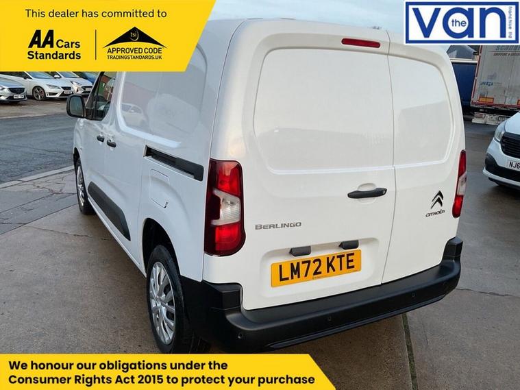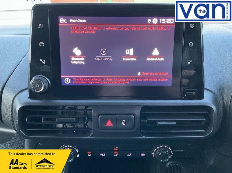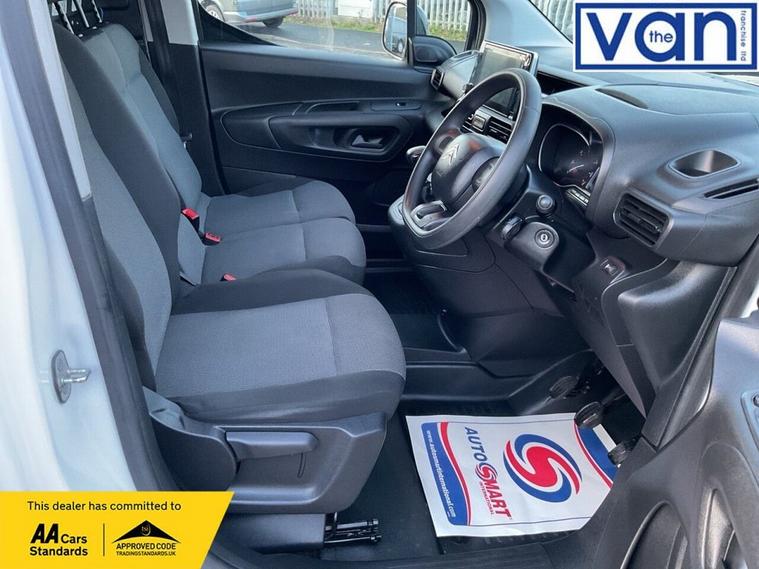 This 2022 Citroen Berlingo is a standout choice, having had only one owner from new and boasting an MOT valid until October 2026, ensuring peace of mind for years to come. This Enterprise M Pro SWB model features a 1.5 litre BlueHDi diesel engine, meeting Euro 6 emissions standards. It comes with a 3 month warranty for added security. Notable features include rear parking sensors for easier manoeuvring, and Mirror Screen technology with Apple CarPlay and Android Auto integration, allowing seamless connection of your smartphone. Youll also find height adjustable halogen headlights with automatic on function, an 8in colour touchscreen with Citroen Connect DAB radio, Bluetooth handsfree, and a USB socket. For comfort, it includes air conditioning. The Citroen Berlingo Enterprise M Pro offers impressive practicality and efficiency. Its fuel economy is a highlight, achieving an excellent 56 miles per gallon, which is better than many vehicles in its class. This model also boasts low CO2 emissions, contributing to its environmental credentials. For those needing to transport goods, the generous cargo volume of 3900 litres provides ample space, making it a highly versatile option for both business and personal use. The vehicle history check is clear, further confirming its excellent condition.