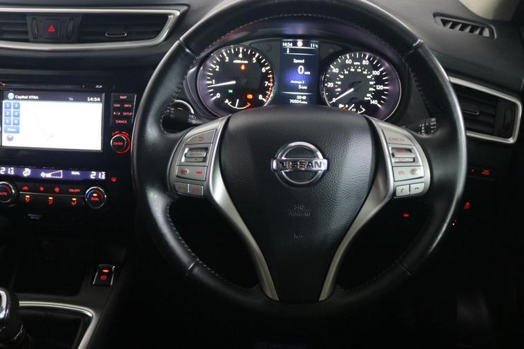 This well maintained Nissan Qashqai n-tec+ finished in metallic Gun Grey looks fantastic complemented by 18 inch Alloy Wheels, Rear Privacy Glass and LED Running Lights. Find your way with integrated SATELLITE NAVIGATION with TOUCHSCREEN Display. Park in ease with AROUND VIEW CAMERA System with FRONT & REAR PARKING SENSORS. Well equipped with PANORAMIC GLASS SUNROOF with Electric Blind. Keep connected with BLUETOOTH Phone System. Listen to your music through DAB Digital Radio. Comfortable to drive with Dual-Zone CLIMATE CONTROLLED AIR CONDITIONING and CRUISE CONTROL with Speed Limiting Function. Well equipped with Power-Fold Door Mirrors, Auto Headlights and Rain-Activated Wipers. Safe to journey with Front Collision Avoidance, Lane Departure Warning and traffic Sign Recognition. Also fitted with ISOFIX seats, Multifunctional Steering Wheel, Immobiliser, Alarm and Remote Door Locking with 2 x keys. Buy in confidence with JUST 1 OWNER from new and FULL SERVICE HISTORY with 11 x Documented Services.