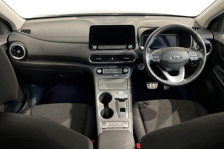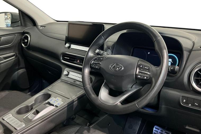 This 2021 Hyundai KONA Premium Electric boasts an MOT valid until September 2026, offering excellent peace of mind. This single owner vehicle features a substantial 68 kWh battery, providing a maximum range of 300 miles when new. For convenience, a full charge at home using a 7kW charger takes approximately 10 hours and 16 minutes, while rapid public charging can replenish the battery from empty to 80% in just 53 minutes. The KONA Premium is equipped with a suite of helpful features designed to enhance your driving experience. These include a rear camera and guidance system, front and rear parking sensors, and Bluetooth connectivity with voice recognition. Stay connected and entertained with Android Auto, and enjoy a comfortable cabin thanks to climate control with an automatic de fog system for the front windscreen. These features collectively demonstrate how this Hyundai KONA offers a superior and more convenient driving experience compared to other vehicles in its class.