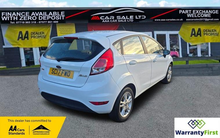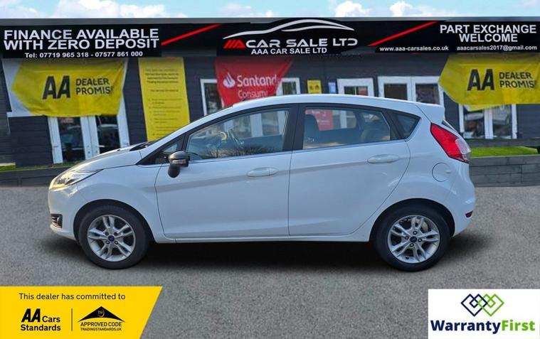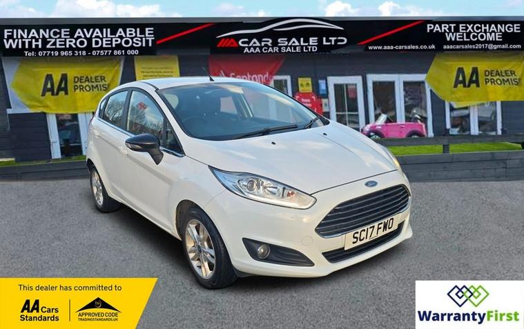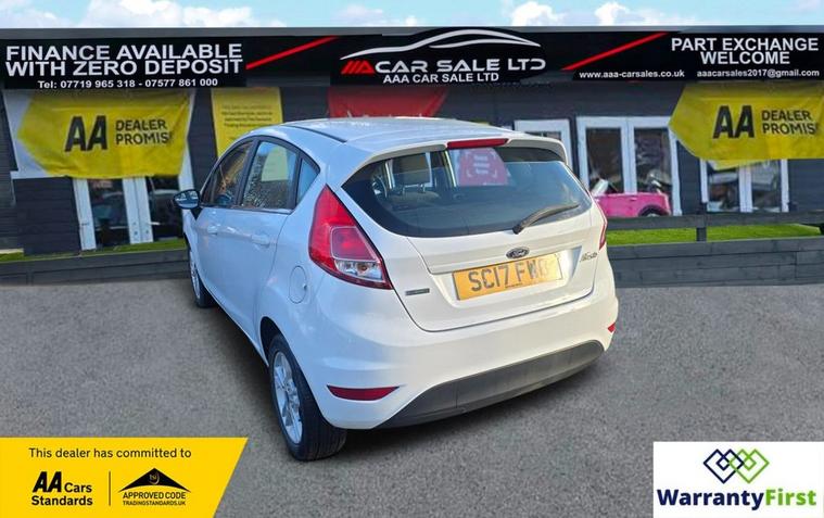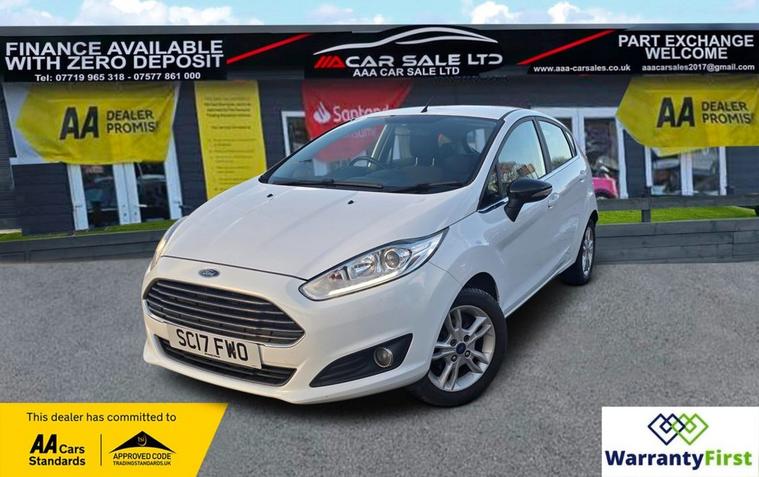 **AAA CAR SALES DARLINGTON LTD HAVE THE PLEASURE TO PRESENT THIS FORD FIESTA 1.0T EcoBoost Zetec Hatchback 5dr Petrol Manual Euro 6 (s/s) (100 ps) in FROZEN WHITE PAINT, SERVICE HISTORY - SERVICED AT 13K, 27K, 37K, 61K AND SERVICED BY US AT 73K.. ALL OUR CARS GO THROUGH 72 POINT INSPECTION, ALL OF OUR CARS COME WITH 12 MONTHS AA BREAKDOWN COVER, FRESH MOT, INTERIM SERVICE, HPI CHECKED VIA EXPERIAN, 3 MONTHS WARRANTY WITH THE OPTION TO UPGRADE ***AUTOTRADER CUSTOMER SERVICE AWARD 2019, 2020, 2021, 2022, 2023 and 2024 YEAR ON YEAR***, WE ARE OPEN 7 DAYS A WEEK FOR YOUR CONVIENIENCE, CALL 01325950841, visit our website dealer's website , Service history, Clean bodywork, Cloth interior - Clean Condition, Tyre condition good, YOU CAN BUY WITH FULL CONFIDENCE FROM AAA CARS CHECK OUR AUTOTRADER REVIEWS FOR FULL PEACE OF MIND,