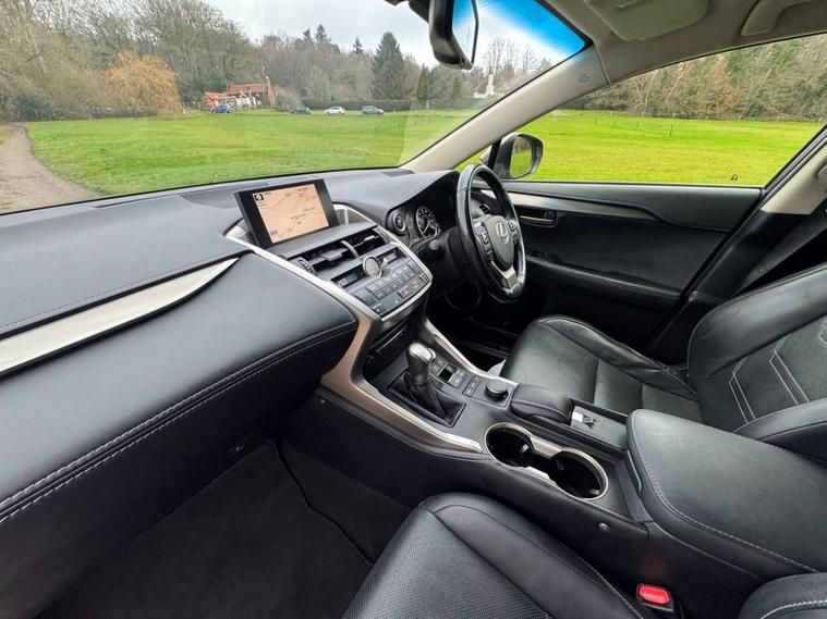 Finished in Sonic Titanium metallic with a full black leather interior, this Lexus NX300h Luxury comes with a Full Lexus Service History, the latest having being carried out by Lexus Guildford in December 2025 which included a full Hybrid Battery Health Check for added peace of mind. Fitted a number of desirable options including Sat Nav, Heated Front Seats and Reversing Camera, and benefitting from AWD and advanced Hybrid powertrain for a surefooted and economical driving experience. Supplied with a Lexus Warranty ( valid til December 2026 or 46275 miles ) and 12 months AA Breakdown Cover. Viewing by appointment.