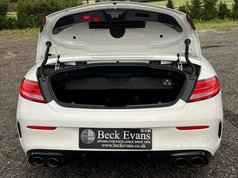 NATIONWIDE DELIVERY AND CLICK AND COLLECT Available. Here At Beck Evans We Are Proud To Introduce This Stunning Mercedes Benz C Class C43 AMG Night Edition Premium Plus 4Matic Convertible, A Luxurious Vehicle Which Boasts A Sleek Design and Powerful Performance. With Only Two Company Owners From New and Comes With LOW MILEAGE. Will Be Serviced Prior To Sale. This Vehicle is Finished in Polar White with Full Black Leather Seats, Red Seat Belts, Electric Adjustable Front Seats With Memory Function, Heated Seats with Airscarf, Surround Camera with Parking Assist Sensors Front and Rear, Satellite Navigation, Switchable Sports Exhaust, DAB Radio, Smartphone Integration with Apple Carplay, Bluetooth, Phone Prep, Dual Zone Automatic Climate Control Air Conditioning, Leather Multifunction Steering Wheel, Automatic Lights, Rain Sensors, Electric Folding Wing Mirrors, Analogue Clock, Auto Dimming Rear View Mirror, Memory Package, Stowage Facility Package, 9 Speed Automatic Transmission, Cruise Control with Speed Limiter, Steel/Air Suspension System, Road Sign Recognition System, Black Fabric Headlining, Ambient Lighting, Dynamic LED Headlamps with Automatic High Beam Control Plus, AMG Styling, Burmester Sound System, Interior Lighting Package, Keyless Entry with Keyless Go, Front Wireless Telephone Charging, Agility Select, High Gloss Carbon Interior trim, Nappa AMG Leather Steering Wheel, AMG Line Interior and Exterior Package, Parking Package High, Mirror Package, AMG Exterior Night Package, 19 Inch AMG Double Spoke Alloy Wheels, Front Lumbar Support, AMG Spoiler Lip, Voice Activated Controls, Isofix Rear Seats, Remote Central Locking, Alarm, Experience the thrill of driving a true powerhouse, equipped with a 3.0L engine and 4Matic all-wheel drive for maximum control and performance. The Night Edition Premium+ trim adds a touch of exclusivity with premium features and technology to enhance your driving experience. Don't miss your chance to own this exceptional Mercedes-Benz C-Class. Visit us today and take it for a test drive to truly appreciate its beauty and performance. Drive in style and luxury with the Mercedes-Benz C-Class. Additional fees may apply, please note, not all cars are kept on site please call to make appointment and to avoid disappointment. pre delivery check, This vehicle will be sold with the benefit of A Optional 24 MONTH EXTENDED WARRANTY WITH MAIN DEALER LABOUR RATES, charged at an additional 1299. Hpi Checked, Part Exchanges Welcome. Low Rate Finance/PCP Finance Options Available, Over 100 Cars and Up To 50 pictures Available Visit Our Website dealer's website call now Tel: 02030182143 USED CAR DEALERS 2022 WINNERS,