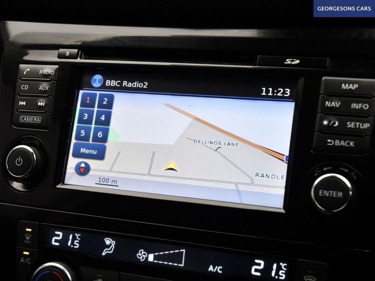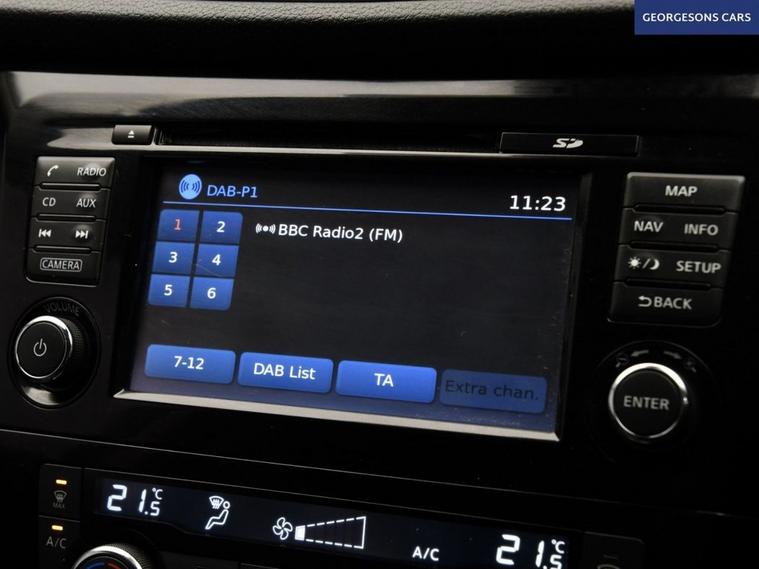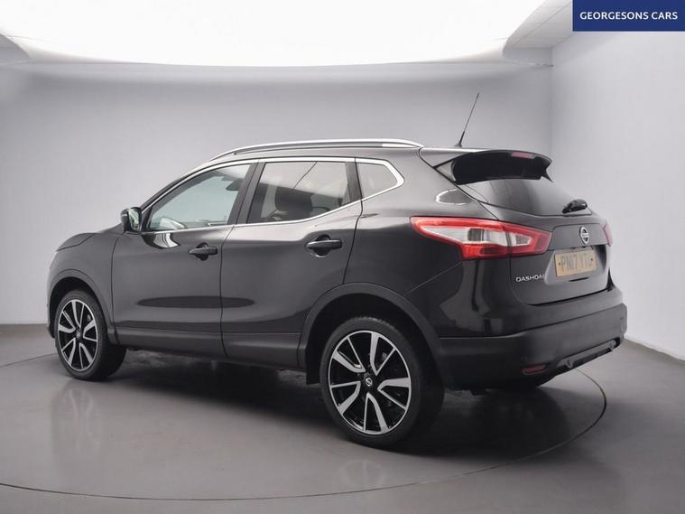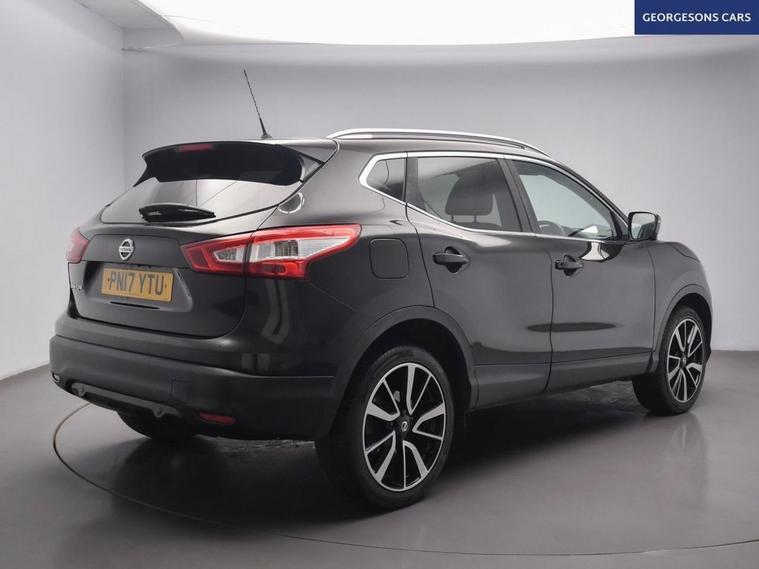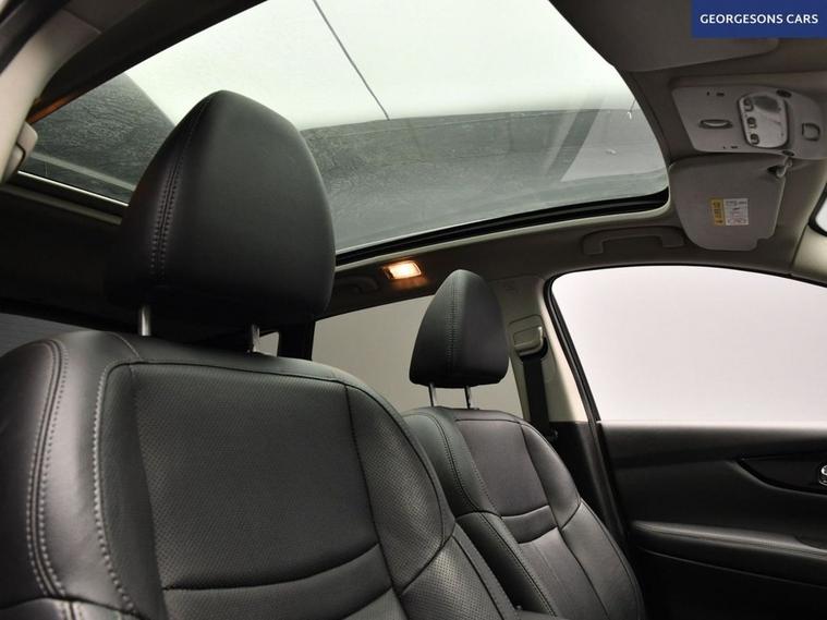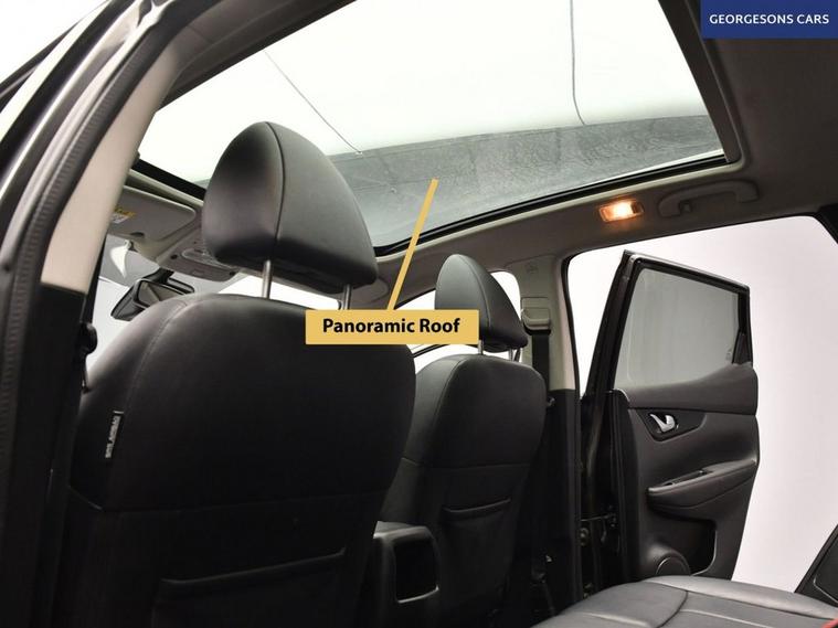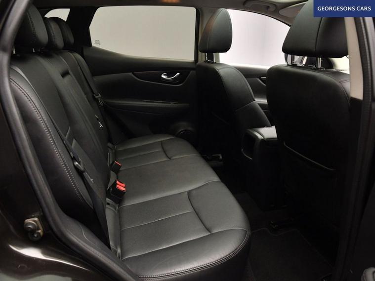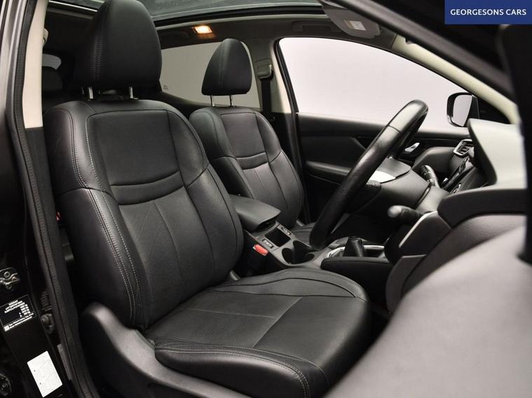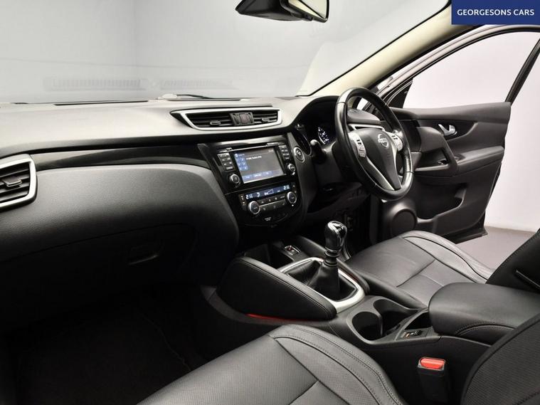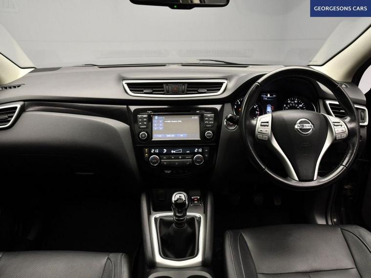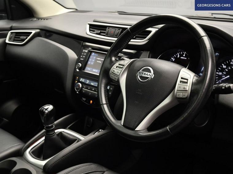 This Nissan Qashqai 1.6 DIG-T Tekna combines a punchy 1.6-litre turbo petrol engine with 163hp, delivering 0-62mph in 9.1 seconds and up to 45.6mpg in this front-wheel-drive setup with a precise 6-speed manual gearbox. The flagship Tekna trim brings full luxury with 19-inch alloys and premium leather interior. With five services, this Qashqai is in excellent condition. Enjoy the airy cabin with the panoramic glass roof, while integrated satellite navigation, Bluetooth and DAB radio keep you connected. Parking is effortless with reverse camera and front & rear parking sensors. Stay comfortable with dual-zone climate control, heated windscreen and electric heated front seats. Cruise control with speed limiter, lane assist and push-button start deliver relaxed, safe driving every day. The spacious five-door SUV includes a 504-litre boot.