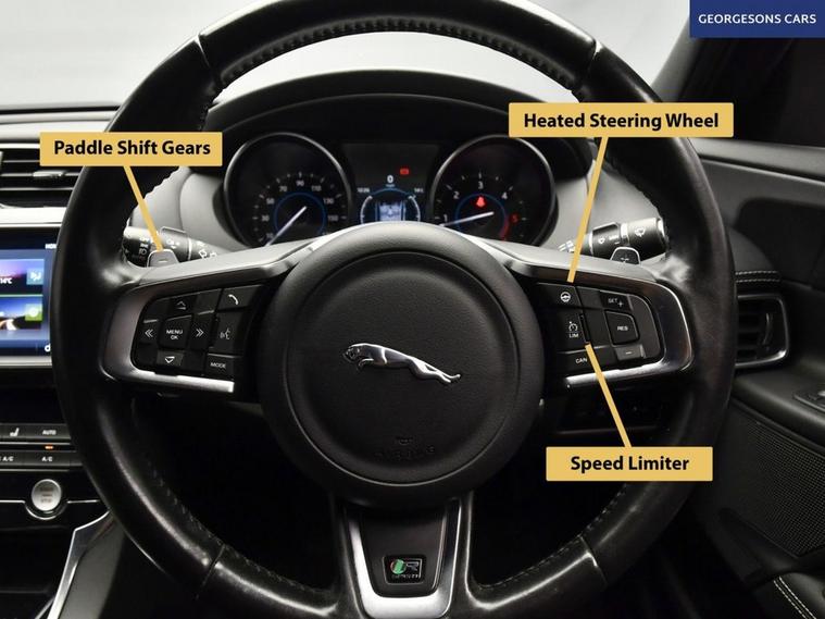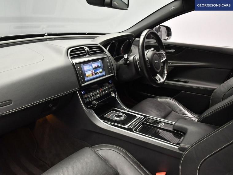 The Jaguar XE 2.0d R-Sport combines a refined 2.0-litre turbo diesel with 180hp, delivering 0-62mph in 7.8 seconds and up to 67.3mpg in this rear-wheel-drive setup with a silky 8-speed automatic. The R-Sport trim brings sharp looks with 18-inch alloys, gloss-black styling and premium sports seats. With one owner and five services, this XE is in superb condition. Stay connected with Bluetooth and DAB radio. Parking is easy with front & rear parking sensors. Stay comfortable with dual-zone climate control, heated windscreen and heated steering wheel. Paddle-shift gears, adaptive cruise control, lane assist and selectable drive modes deliver effortless, engaging driving every day. The sleek four-door saloon includes a 455-litre boot.