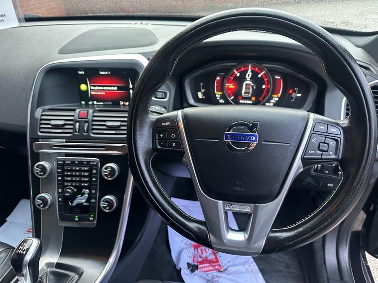 Only £35 a year road tax : Stamped Volvo main dealer service record (please see photos) : 2 Keys : Bluetooth : Satellite Navigation system : DAB Radio : R-Design contrasting leather upholstery : R-Design steering wheel : Isofix fittings : Electric Drivers seat : Heated front seats : Heated screen : Air-conditioning : Cruise control : Auto headlights/wipers : Volvo City-Safety system : Volvo Active-Bending lights : Rear parking sensors : Remotely operated tailgate : Rear privacy glass : Roof-Rails : 18-inch alloy wheels : Stylish Onyx black paintwork : Please go to dealer's website to see more vehicles like this....................................