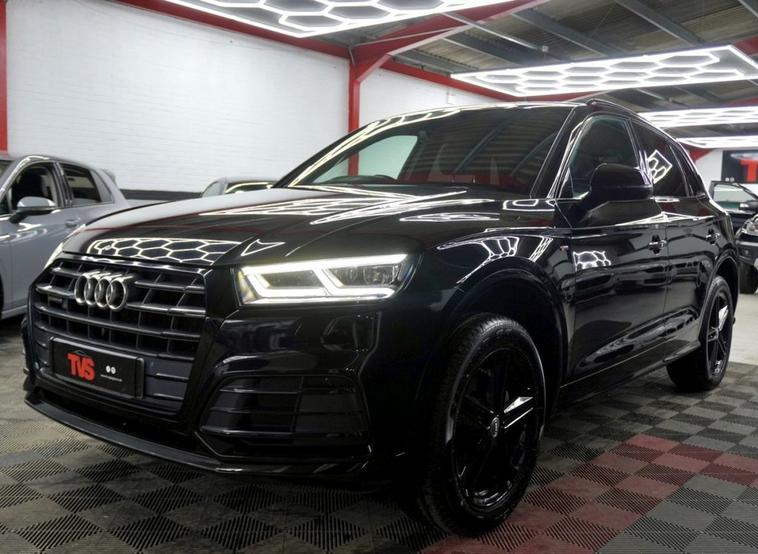 2018 Audi Q5 S Line 2.0 TDI Quattro S Tronic SUV - Automatic - Mythos Black with half leather S Line interior (heated front seats) - 56k miles - 3 former keepers - 2 remote keys - Audi main dealer service history and independent garage service history - Just serviced for sale by independent Audi specialist with Audi DSR updated - fresh 12 months MOT with no advisories - Platinum warranty - full 12 months AA roadside assistance also included! Black Edition Styling Pack! Gloss black S Line alloy wheels! Apple Car Play/ Android Auto! Heated front & rear seats!
