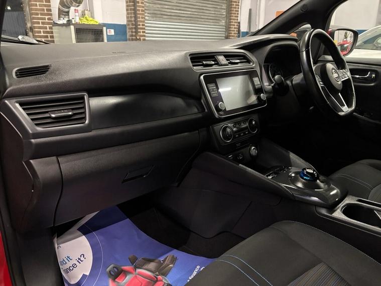 Scotts of Leeds used Car Sales are pleased to offer this NISSAN LEAF 39kWh Acenta Hatchback 5 Door Electric Automatic in Red. The car is in good condition throughout, in a lovely colour combination and a great specification including adaptive cruise control, Speed limiter, DAB radio, Bluetooth, apple carplay, AUX and USB, 360 reverse camera, Front and Rear parking sensors, automatic lights and wipers, alloy wheels, isofix, Keyless entry, Pushbutton start, and much much more. 1 Owner from New supplied with an up to date service record including 4 services, an MOT until November 2026 and 2 Keys ready to drive away. 3 MONTH NATIONWIDE WARRANTY provided with all vehicles. NATIONWIDE DELIVERY also available. A guaranteed 12 Months MOT can be added for an extra £100. DISCLAIMER: The above specification is true and correct. Any other specification listed elsewhere can sometimes be incorrect. Please check with Sales Executive to clarify this if needed prior to purchase.